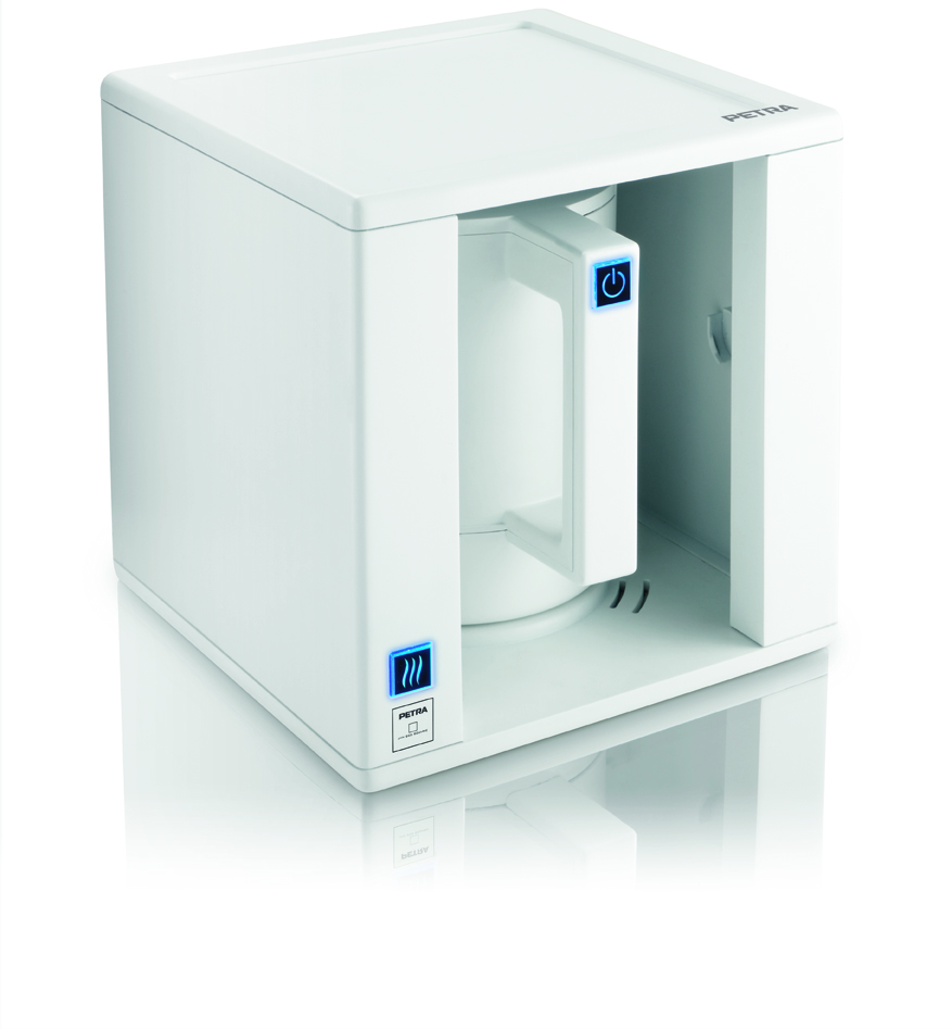 Der Petra compact 4all Wasserkocher ist Teil der kompakten Frühstücksserie compact4all, die von dem holländischen Designer Jan Des Bouvrie gestaltet wurde. Die besteht aus vier Haushaltsgeräten – einem Wasserkocher, einem Kaffeeautomaten, einem Toaster und einer Zitruspresse. Alle vier Geräte können entweder mit einem einzigen Anschluss oder jedes Gerät einzeln betrieben werden. So lassen sich die Geräte entweder separat oder als Vierer-Kubus aufstellen und sich optimal in jede noch so kleine Küche oder Wohnung integrieren lassen.