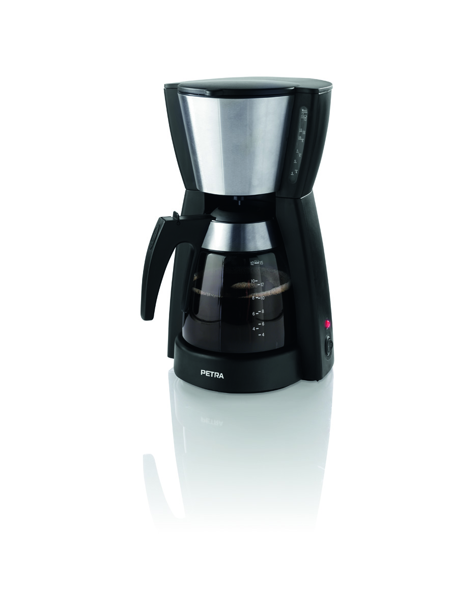 Die Petra Electric Belluno Kaffeemaschine kommt mit attraktiver Glaskanne und bereitet 10-12 Tassen schmackhaften Kaffee zu. Die Warmhaltefunktion garantiert immer eine gute Kaffeetemperatur. Der Filterhalter ist herausnehmbar, den Stand des eingefüllten Wassers kann man auf der außenliegenden Anzeige sehen.