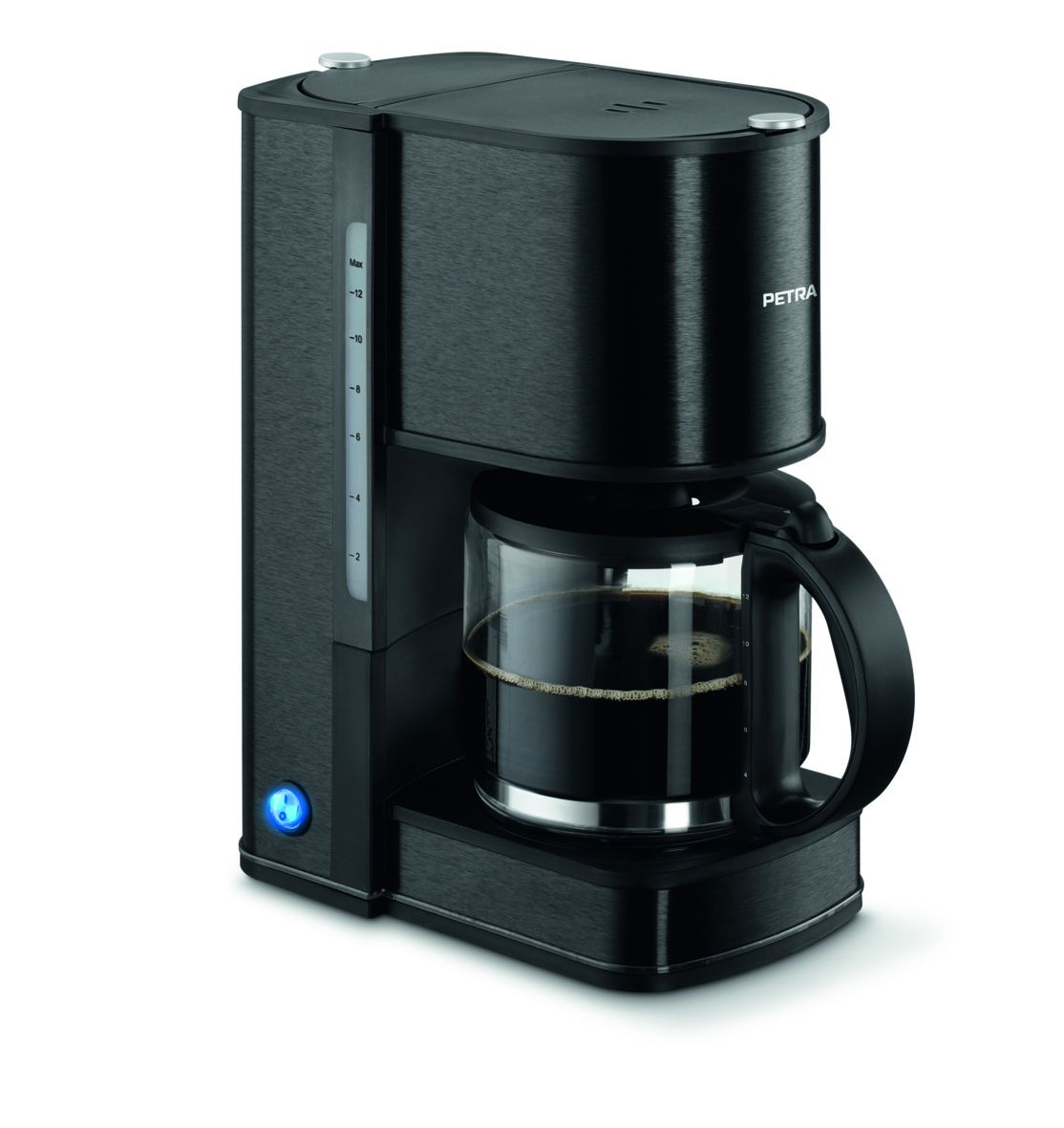 Die Petra Electric Kaffeemaschine ALU zeigt ein hübsches Design in schwarz gebürsteten Aluminium und kommt mit attraktiver Glaskanne daher, die auch auf dem Frühstückstisch eine gute Figur macht. Die Warmhaltefunktion garantiert eine immer gute Kaffeetemperatur. Der Filterhalter ist herausnehmbar und leicht zu reinigen. Die Wassermenge ist an der außen liegenden Wasserstandanzeige deutlich abzulesen.