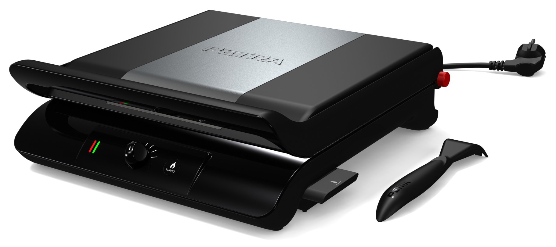 Der Petra Grill Panini Turbo PG 16.07 bereitet den perfekten Snack zu. Die zwei Grillplatten haben eine kurze Erhitzungszeit. Die horizontale Beweglichkeit der oberen Platte ermöglicht eine optimale Verteilung der Hitze auf das vorbereitete Essen. Darüber hinaus werden die Platten durch das Smart Press-System aneinander gepresst. Einfach das Grillgut auflegen, obere Platte herunterklappen und per Knopfdruck fixieren. Der Temperaturregler hilft, für jedes Gericht die richtige Bräunung zu erzielen. Mit der Turbofunktion ist ein schnelles Erhitzen der Grillplatten garantiert. So lässt sich auch Fleisch für den Imbiss mühelos zubereiten. Die Grillplatten haben eine Antihaftbeschichtung, so dass die Panini auch ohne Fett zubereitet werden können. Die Reinigung ist schnell und einfach, auch dank des dazugehörigen Schabers. Weitere Features sind eine integrierte Kabelaufbewahrung sowie eine Ablaufrinne für das Abfließen austretender Flüssigkeiten in den Auffangbehälter.