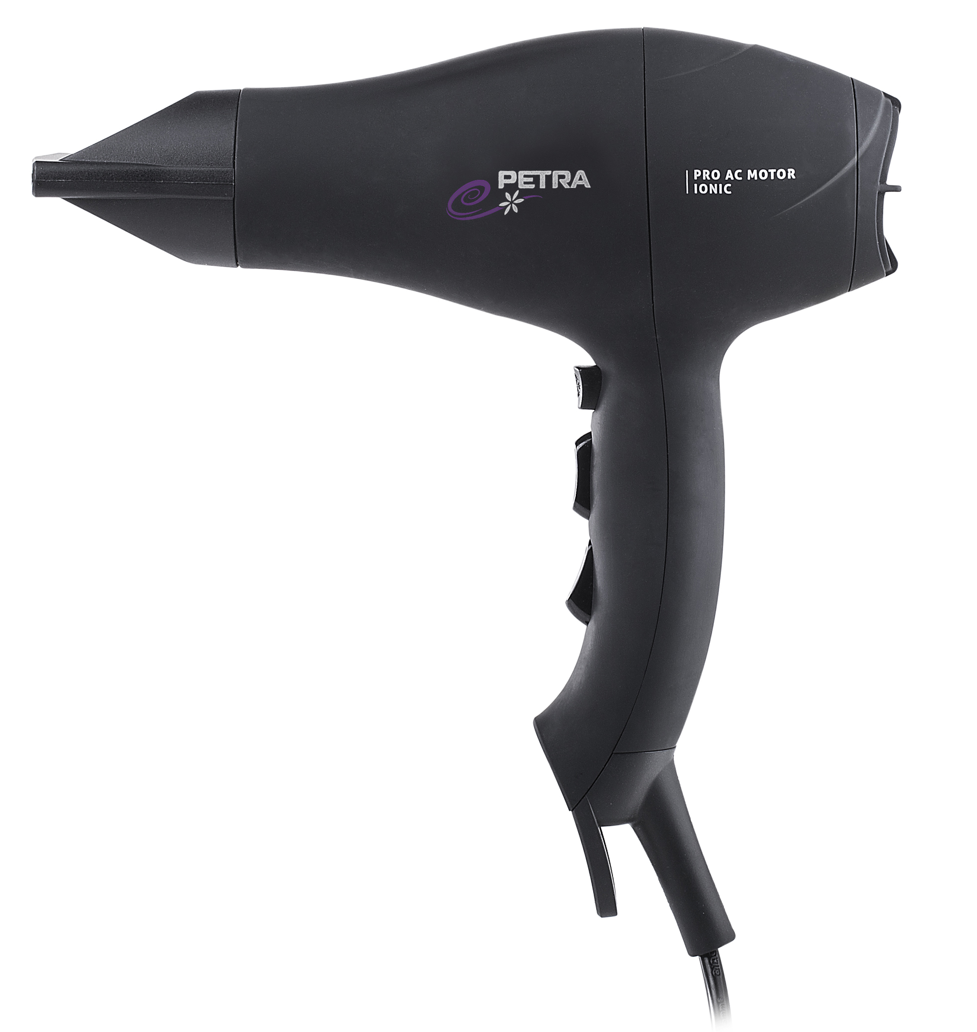 Der Petra Haartrockner Pro HT 70.07 Black Edition bietet drei Temperatur- und zwei Leistungsstufen. Sein 2000-Watt starker AC Motor besitzt eine lange Lebensdauer und sorgt für schnelleres Haare trocknen als vergleichbare Geräte ohne AC Motor.