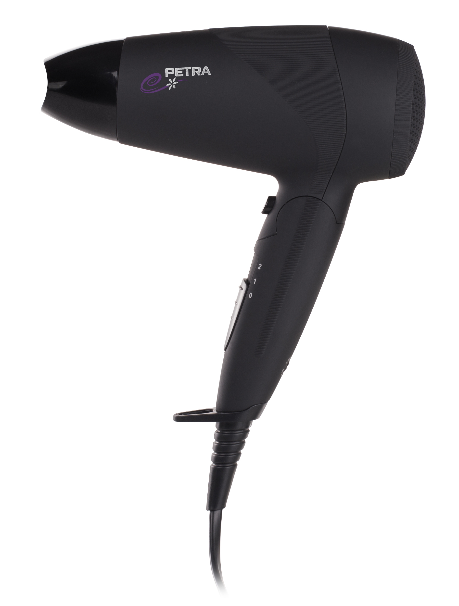Der Petra Haartrockner Pro HT 71.07 Black Edition ist ein Reise-Föhn mit einklappbarem Handgriffs. Sein Motor hat eine Leistung von 1600 Watt. Mit zwei Heiz- und einer Kaltstufe bringt er nasses Haar schnell und sanft in Form. Für einen weltweit sicheren Gebrauch ist das Gerät mit Anschlüssen für Mehrfach-Spannung (120-240 V) ausgestattet und bietet so überall die gleiche Leistung wie zu Hause.