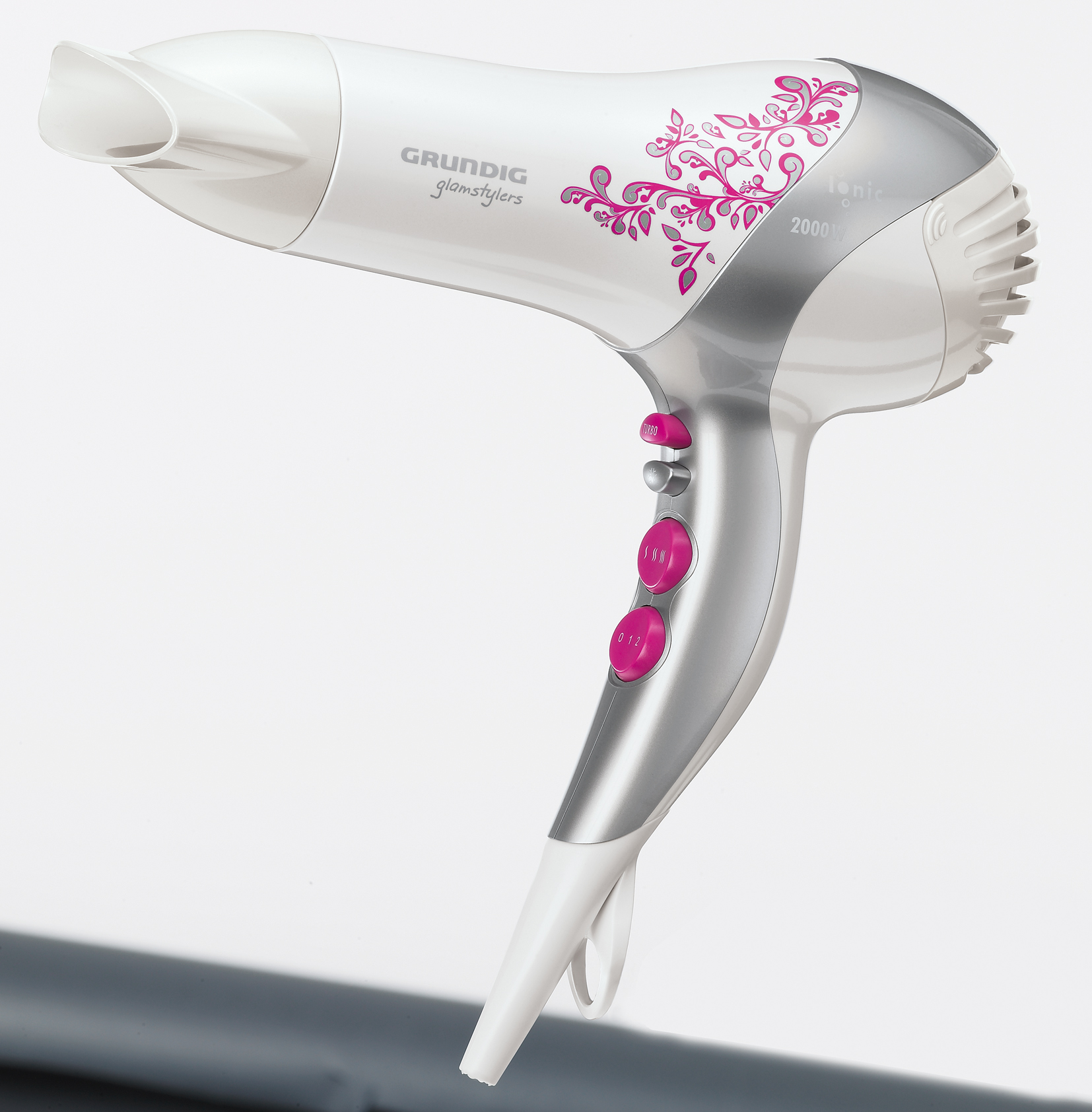 Ideal ergänzt wird das trendige Hairstyling Programm von Grundig durch den Ionic Haartrockner HD 6862 mit Ionic-Funktion für antistatische und gesund glänzende Haare. Neben leistungsstarken 2000 Watt, drei Temperatur- und zwei Gebläsestufen sowie der separaten Turbo-Taste gewährleistet auch die Ionic- Funktion schnelleres Trocknen, ohne dem Haar Feuchtig- keit zu entziehen. Die schmale Stylingdüse und die Kaltstufe zur Haarfixierung sorgen für gezielte und dauerhafte Stylingergebnisse. Ausgezeichnet mit der Note „SEHR GUT“ in der Kategorie Benutzerfreundlichkeit und Anwendung und als zweitschnellster unter 12 getesteten Haartrocknern erreicht der Ionic Haartrockner HD 6862 die sensationelle Testquote von 91,8 %.