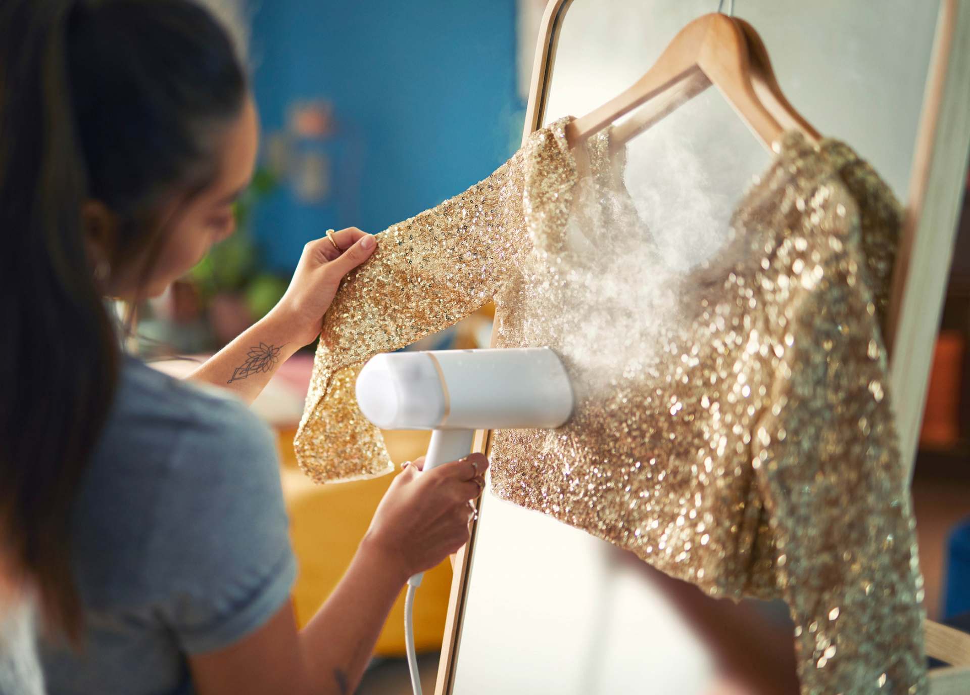 Durch den heißen Dampf werden die Kleidungsstücke nicht nur aufgefrischt und geglättet, sondern auch Gerüche und bis zu 99,9 Prozent der Bakterien und 100 Prozent der Staubmilben entfernt. So werden Waschgänge und Energie gespart und gleichzeitig die Haltbarkeit der Kleidung verlängert.