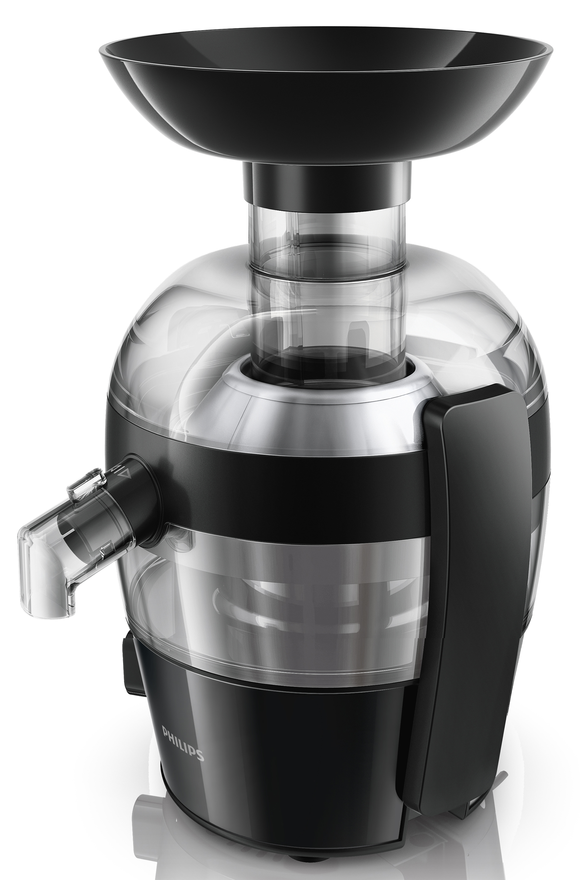 Der Philips Entsafter Viva Collection HR1833/00 verfügt über einen integrierten Auslauf mit Tropfstopp. Dieser ermöglicht ein Entsaften direkt ins Glas (maximal 12 Zentimeter Höhe). Der Fruchtfleischbehälter ist durchsichtig, so sieht man auf einen Blick, wie viel Kapazität er noch hat. Das Gerät hat einen zusätzlichen Beerenschalenaufsatz. Mit der QuickClean-Technologie ist eine komplette Reinigung in nur einer Minute ermöglicht.