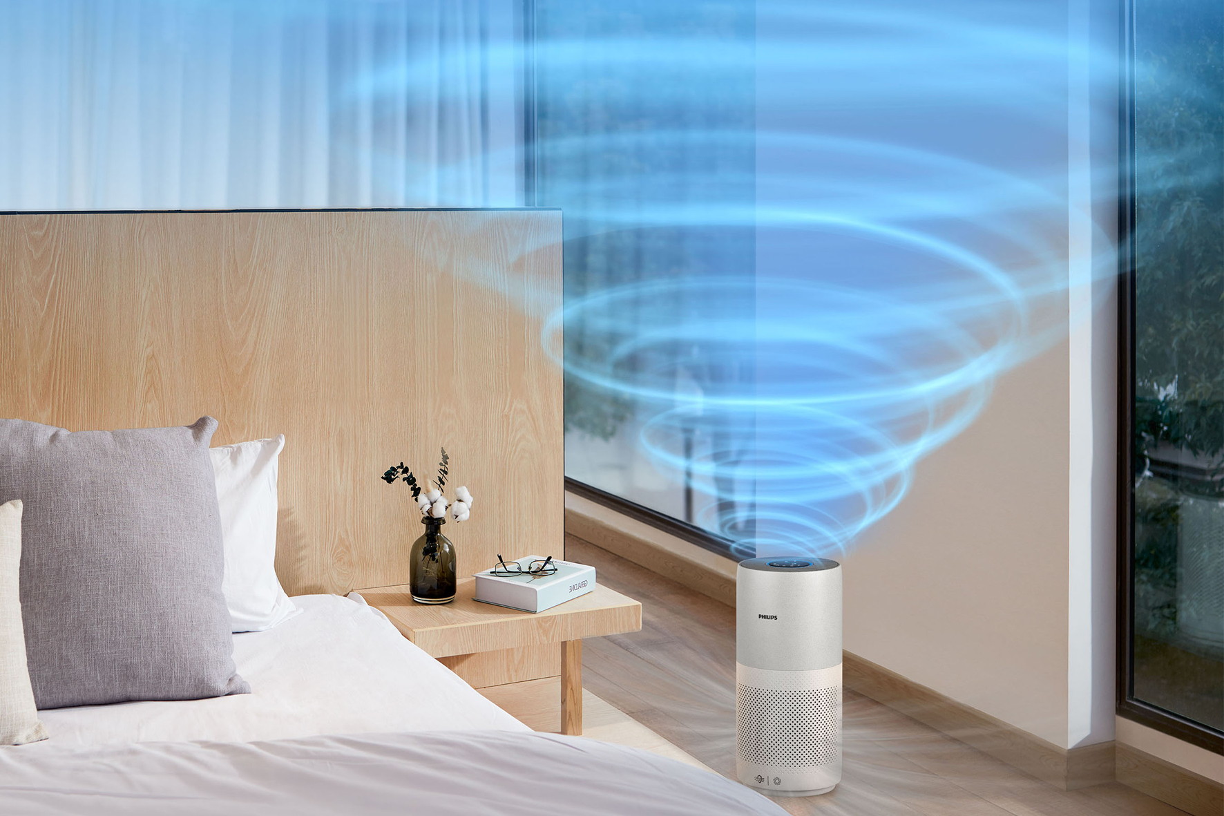 Der Philips Luftreiniger 2000 sorgt dafür, dass mehr als 99 % der luftübertragenen Partikel mit einer Größe von 0,003 µm – kleiner als das kleinste bekannte Virus – automatisch entfernt werden.