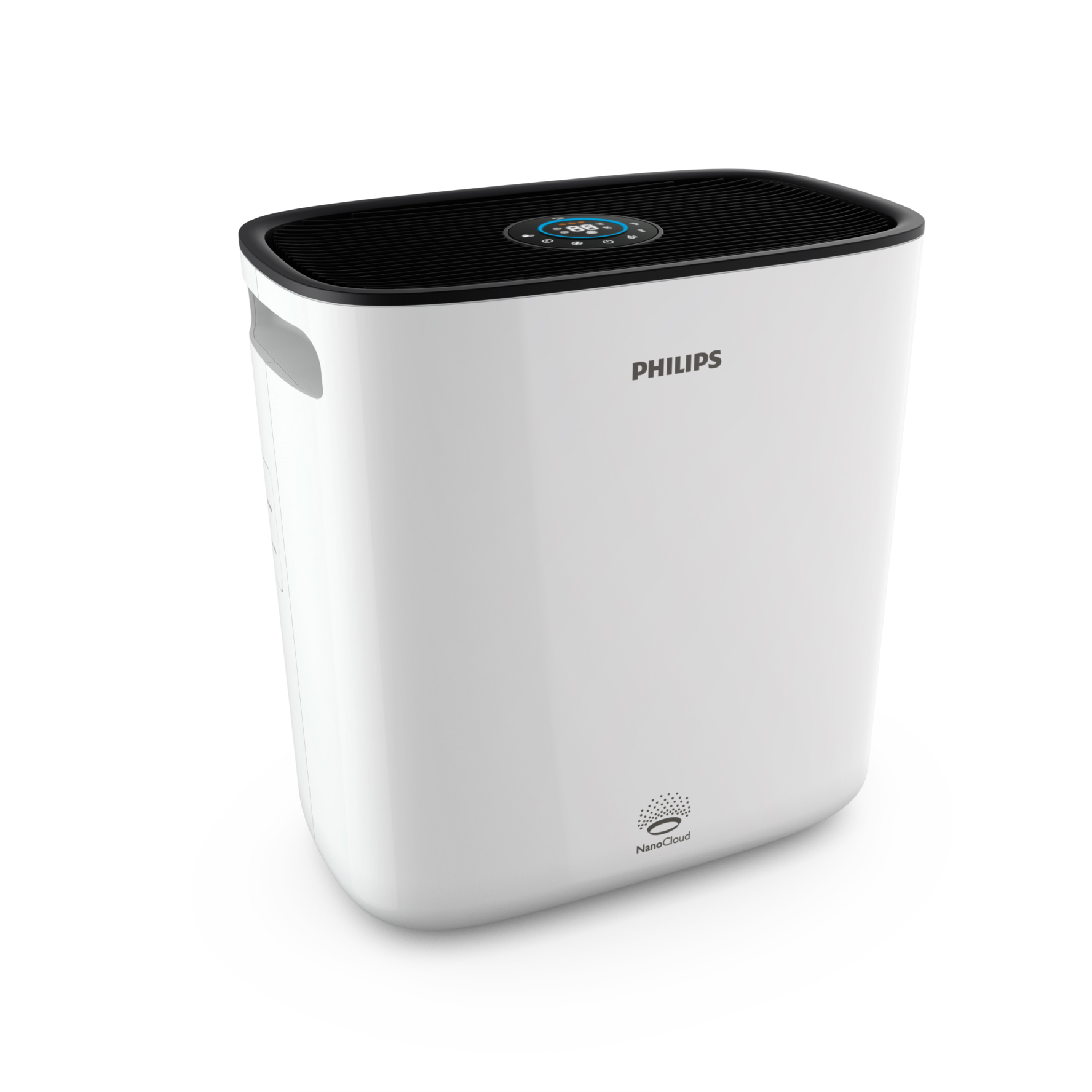 Die Philips NanoCloud Verdunstungs-Technologie wurde als hygienisch sicher zertifiziert und gibt im Vergleich zu Ultraschall-Luftbefeuchtern ungefähr 99 Prozent weniger Bakterien in die Luft ab. Der unsichtbare Sprühnebel verursacht keinen weißen Staub oder gar nasse Stellen. Die Technologie ermöglicht eine konstante und gleichmäßige relative Luftfeuchtigkeit – je nach Bedarf kann auf vier Lüftergeschwindigkeiten und vier Luftfeuchtigkeitseinstellungen zurückgegriffen werden: 40, 50, 60 Prozent oder eine durchgehende Befeuchtung. So sorgt sie für saubere Luft, die praktisch frei von Krankheitserregern und Schimmelpilzen ist. Der Nano Protect-Filter entfernt 99 Prozent an Bakterien und filtert Schadstoffpartikel mit einer Größe von bis zu 0,02 µm heraus, einschließlich Feinstaub, Pollen und Bakterien. Zuverlässig kümmert er sich auch um die Filterung von Zigarettenrauch. Damit die Erhaltung der gesunden Luft sichergestellt ist, erinnert die Warnfunktion sofort, sobald der Filter oder das Befeuchtungselement ausgetauscht werden müssen.