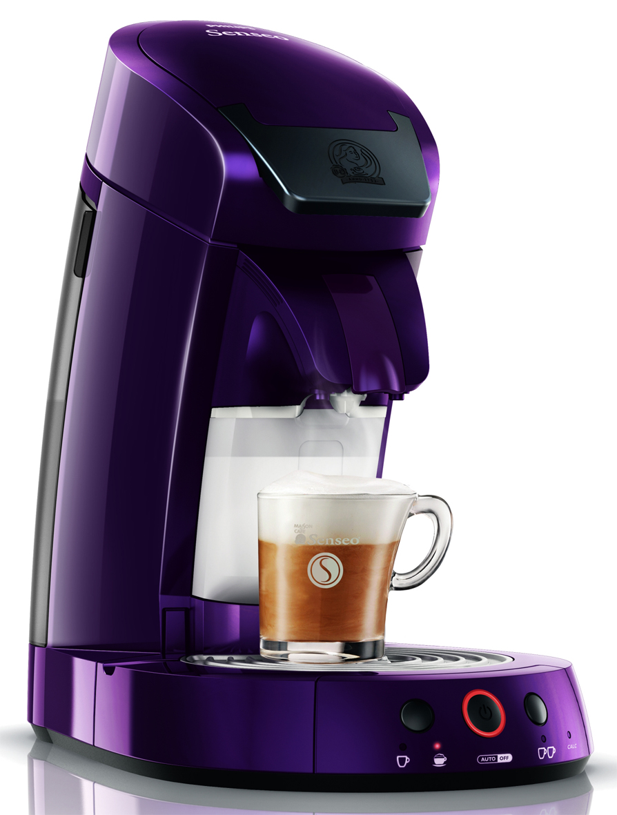 Die Philips Senseo Cappuccino Kaffeepadmaschine, in stylischem Aubergine oder edlem Schwarz, bereitet einfach und schnell Cappuccino mit lang anhaltendem, cremigem Schaum. Dafür muss nur der integrierte Behälter mit frischer Milch befüllt werden. Auf Knopfdruck werden dann Kaffee und Milch durch getrennte Schlauchsysteme geführt, gelangen aber durch denselben Kaffeeauslauf in die Tasse. In weniger als einer Minute entsteht so eine der beliebtesten Kaffeespezialitäten mit einer zwei Zentimeter hohen Milchschaum-Schicht. Selbstverständlich kann man seinen Kaffee auch wie bisher gewohnt schwarz trinken.
