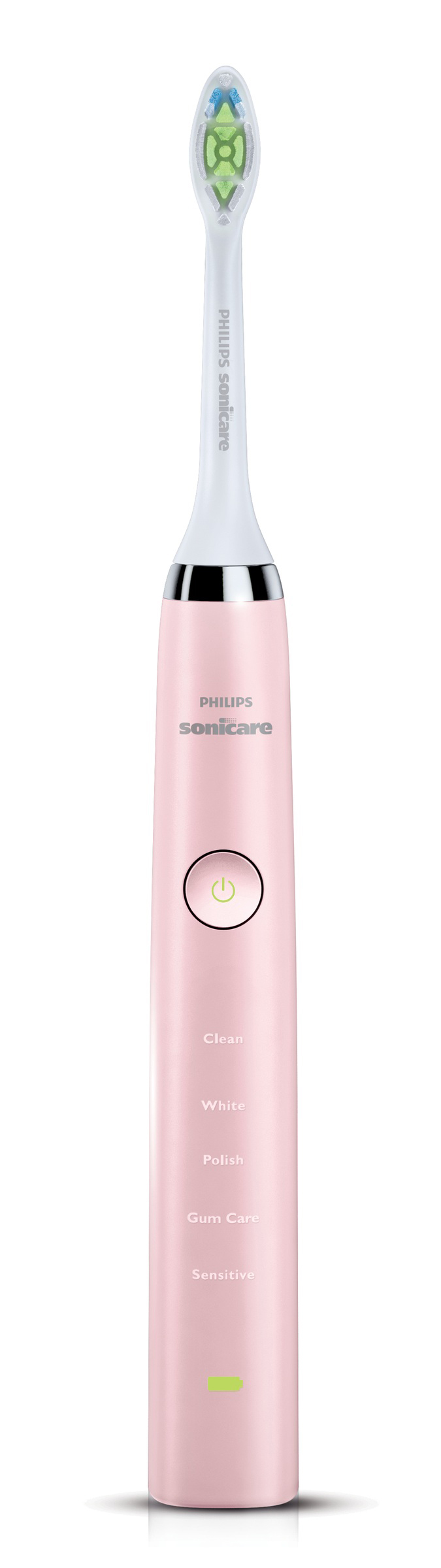 Dank des ausdauernden Lithium-Ionen-Akku bietet die Sonicare DiamondClean Pink Edition bis zu drei Wochen zuverlässige Leistung. Aufgeladen wird sie mithilfe eines innovativen und formschönen Zahnputzglases, das auf eine Ladestation mit induktiver Auflade-Technologie gestellt wird. Sobald die Unterseite der Zahnbürste den Boden des Glases berührt, beginnt der Ladevorgang. Wer für längere Zeit verreist kann seine Sonicare aber auch im zauberhaft pink-farbenen Reiseetui verwahren, das mit einem USB-Anschluss ausgestattet ist und zum Aufladen unkompliziert an jede Steckdose oder jeden Laptop angeschlossen werden kann.