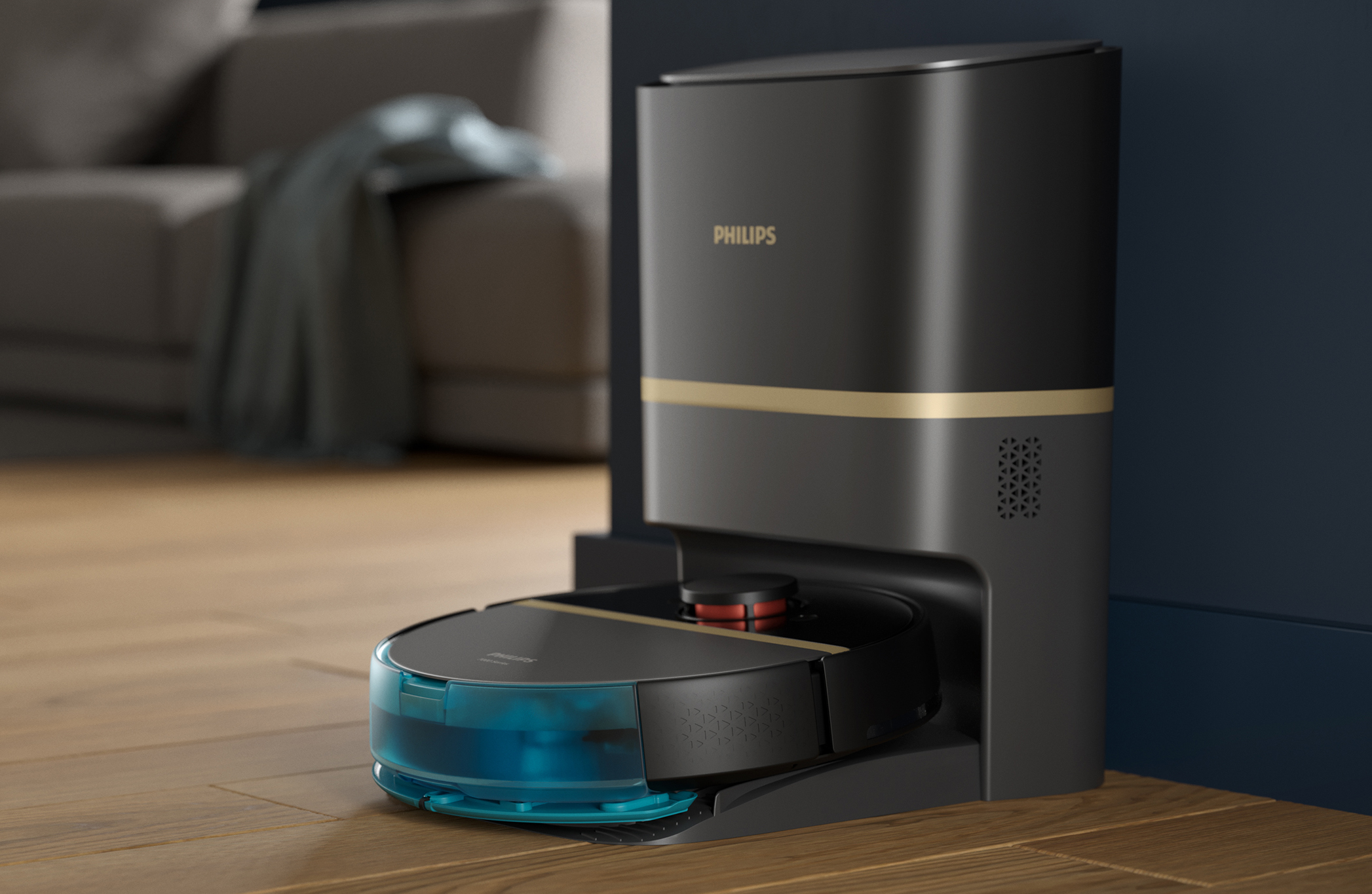 Der Philips Staubsauger-Roboter HomeRun 7000 ist ein Saug- und Wischroboter, der ortsunabhängig per App gesteuert Hart- und Teppichböden reinigt.