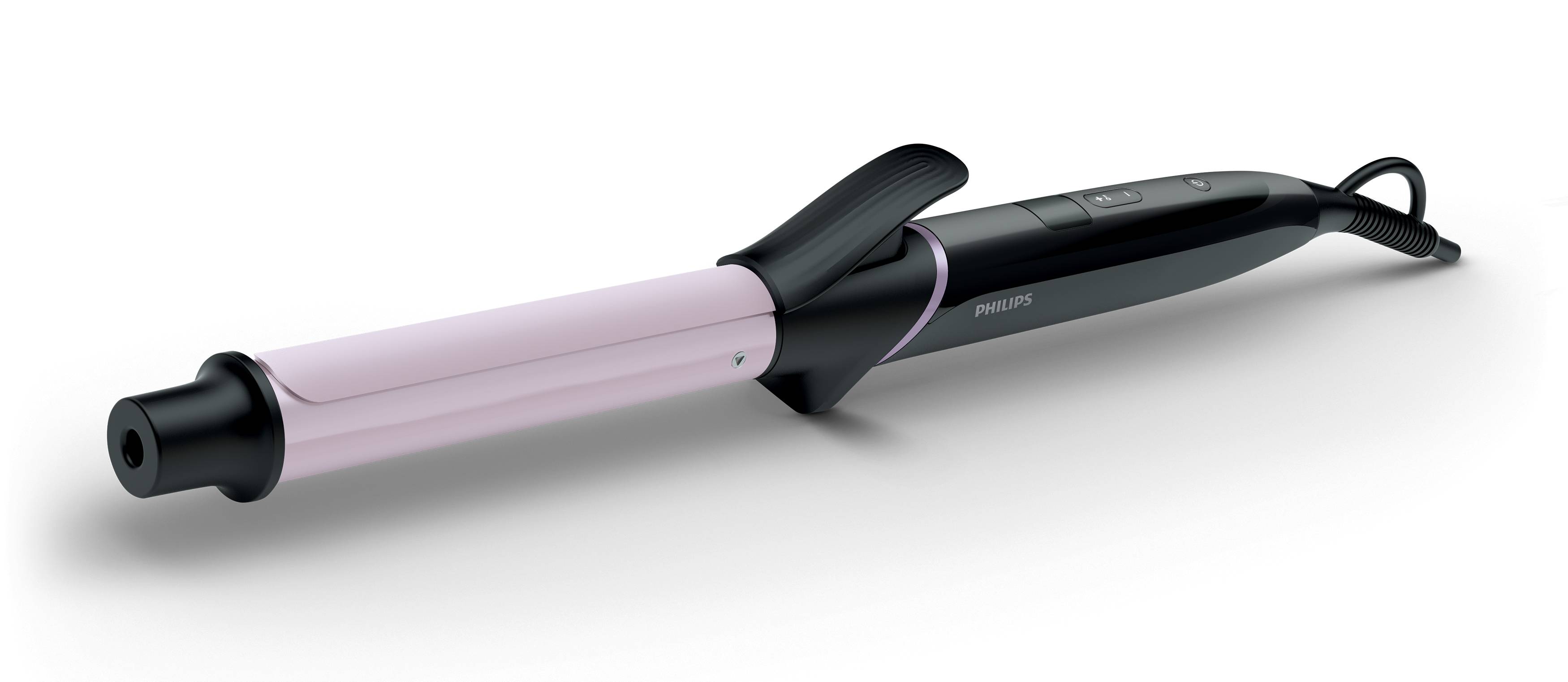 Der Philips StyleCare Essential Lockenstab BHB862/00 steht für Bouncy Curls und Korkenzieherlocken, die seine Leidenschaft sind. Der Philips StyleCare Essential Lockenstab BHB862/00 mit nur 26 mm Duchmesser liefert sie schon nach 60 Sekunden Aufheizzeit. Die LED-Anzeige blinkt, wenn es losgehen kann. Seine Top-Temperatur beträgt 200 Grad Celsius, die schützende Keramikbeschichtung sorgt für eine gleichmäßige Wärmeverteilung.