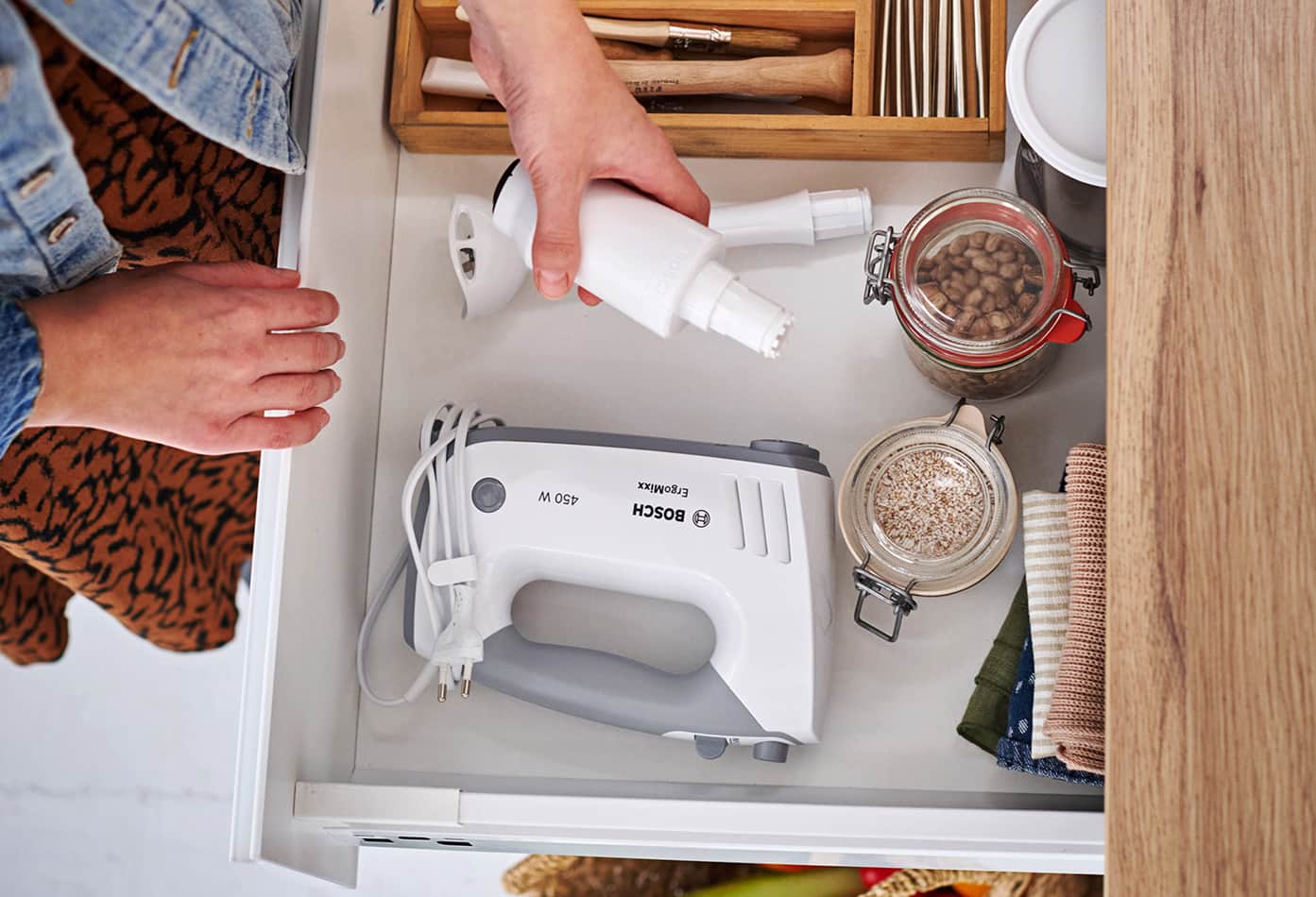 Viele Funktion in nur einem Gerät – so geht Multipurpose. Ob der ErgoMixx Handrührer mit Vakuumierfunktion, die Küchenmaschine MUM2 oder der Akku-Sauger Flexxo Gen2 Serie 4 – drei Raumwunder von Bosch versprechen maximale Anwendungsmöglichkeiten bei minimalem Platzanspruch.