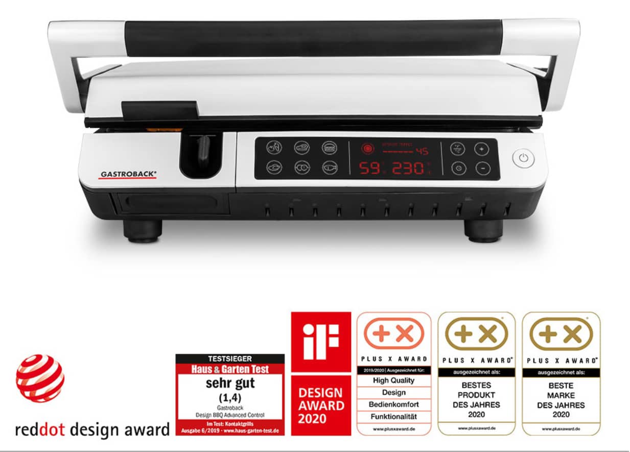 Mit der Auszeichnung „Beste Marke des Jahres“ erhält der Vielseitigkeits-Kontaktgrill Design BBQ Advanced Control von Gastroback seine insgesamt sechste Auszeichnung und ist damit der BBQ-Champion auf dem Markt.