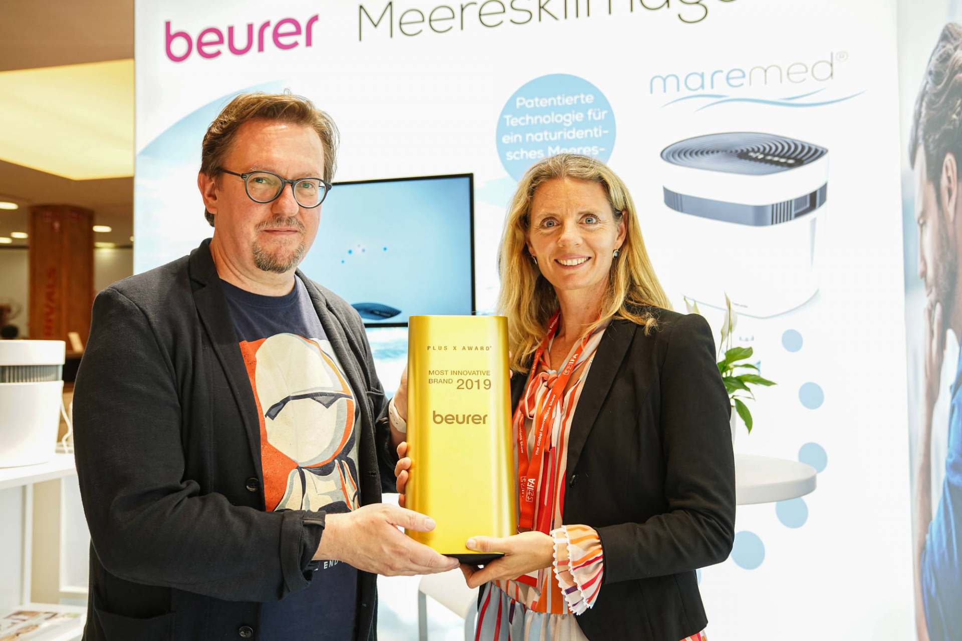 Schon im März erhielten acht Beurer Produkte die begehrten Qualitätssiegel: die Diagnose-Waage BF 950, der Achillomed FM 200, die Schnarchmaske SL 60, das Oberarm-Blutdruckmessgerät BM 54 Bluetooth, das Fieberthermometer FT 85, der cellulite releaZer, die Körperbürste FC 55 Pureo Complete Cleansing sowie das Maniküre-/Pediküreset MP 64. Die Marken, die im gesamten Jahr die meisten Gütesiegel in einer Produktgruppe erreichen konnten, werden dann als „Most Innovative Brand” geehrt.