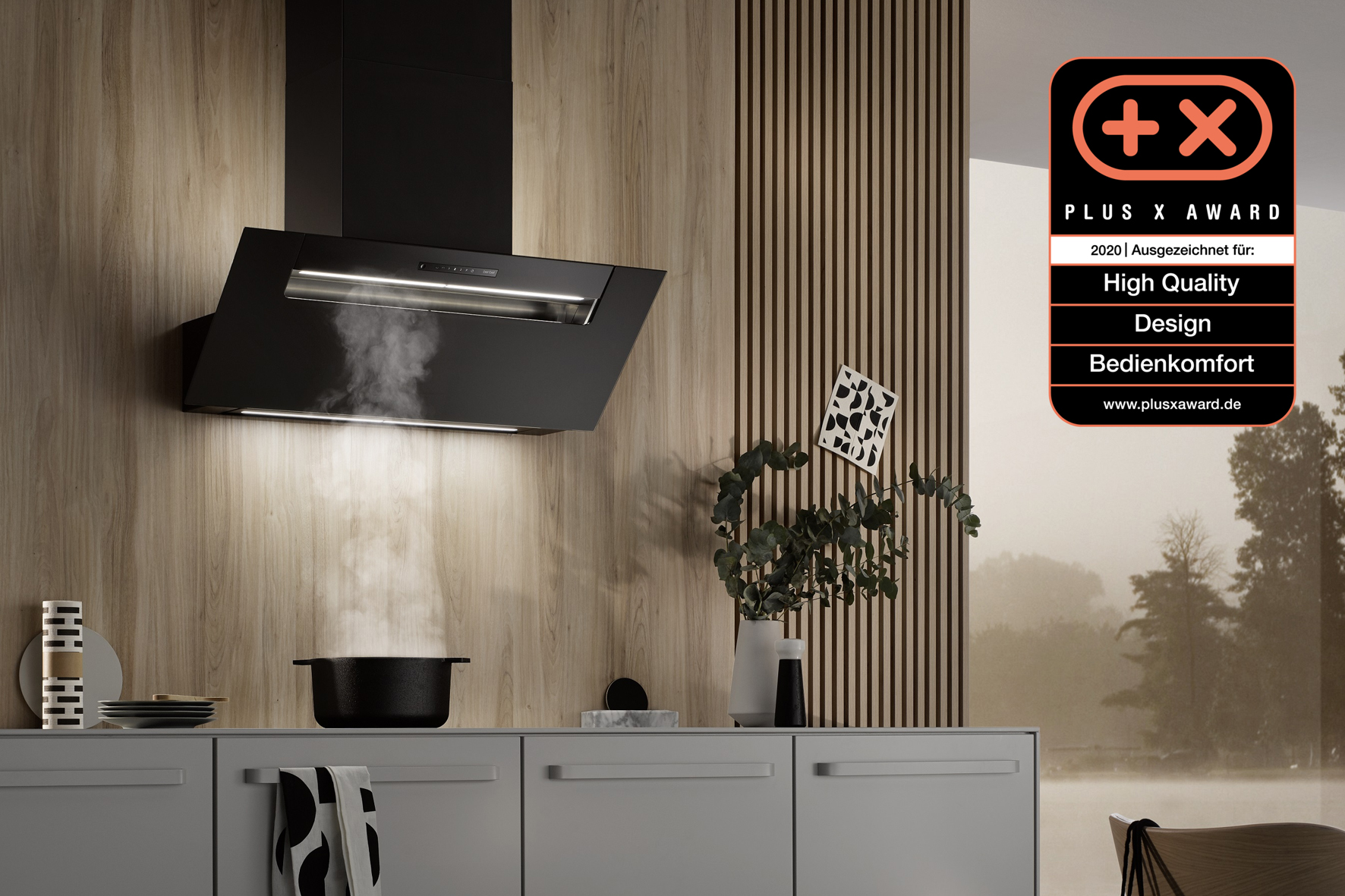 „Wir freuen uns über den Plus X Award für unsere Kopffreihaube Ergoline 2 in Mattschwarz, denn dieser Dunstabzug passt sich problemlos jedem Küchendesign an“, erklärt CEO Karl von Bodelschwingh. Die internationale und unabhängige Fachjury des Plus X Award prämierte die Ergoline 2 in den Kategorien High Quality, Design und Bedienkomfort.
