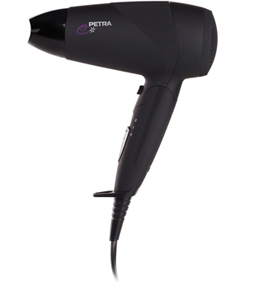 Der 1600W Reise-Haartrockner von Petra eignet sich dank der Mehrfach-Spannung (110-240 V) optimal zum Reisen. Die abnehmbare Stylingdüse sorgt für einen konzentrierten Luftstrom, so dass das Haar präzise gestylt werden kann. Praktisch ist der klappbare Griff, welcher das Verstauen in jeder Tasche ermöglicht. Zudem ist im Lieferumfang auch eine Transporttasche enthalten.