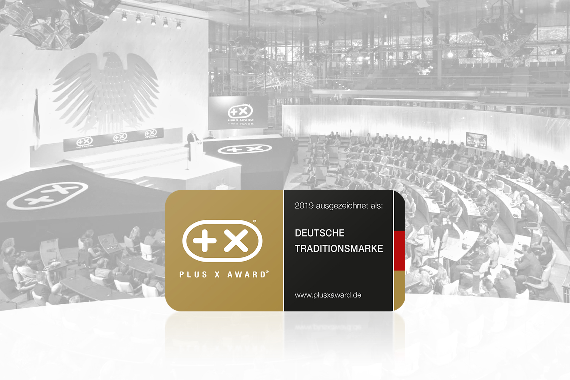 Neben den etablierten Plus X Award-Gütesiegeln Innovation, High Quality, Design, Bedienkomfort, Funktionalität, Ergonomie und Ökologie sowie den Sonderauszeichnungen „Bestes Produkt des Jahres“, „Beste Marke des Jahres, „Innovativste Marke des Jahres“ und „Beste Designmarke des Jahres“, hat der Award jetzt eine neue Auszeichnung in seine Reihen aufgenommen, mit der der international anerkannte Award sich besonders auf seine Heimat Deutschland konzentriert – eben dort, wo die Tradition immer schon einen starken Einfluss auf die Wertebildung hatte. Mit der Auszeichnung „Deutsche Traditionsmarke“ würdigt der Pus X Award deutsche Marken, die sich seit Jahrzehnten oder gar seit mehr als einem Jahrhundert jenen Werten verpflichtet fühlen, die für Tradition stehen.