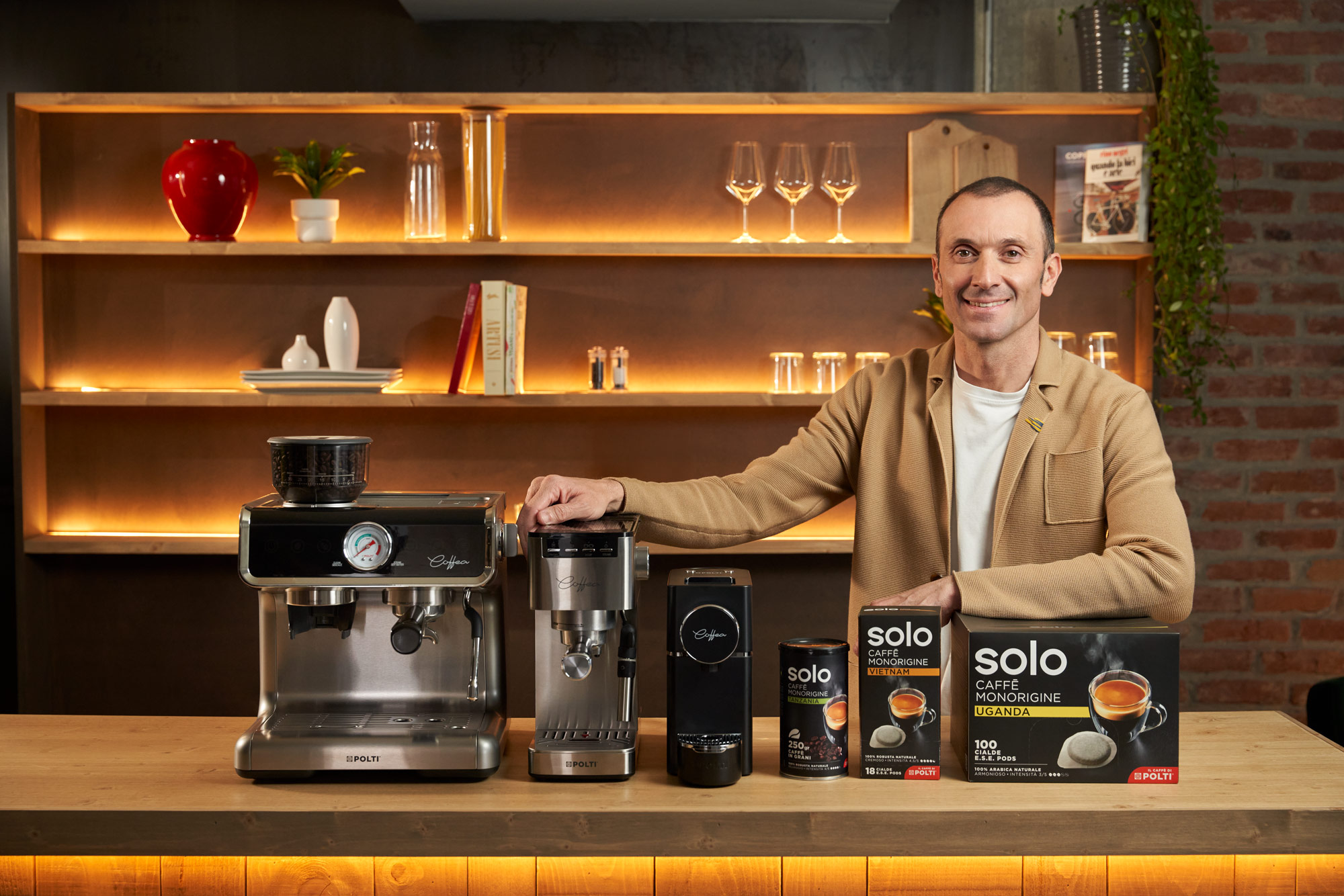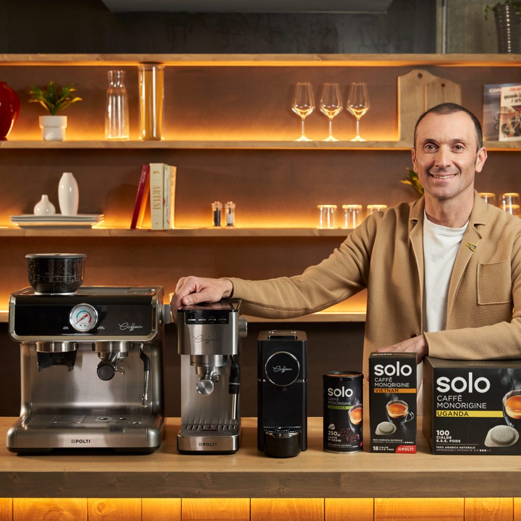 Im Zuge dieser Partnerschaft stellt Polti seinen sortenreinen Premium-Espresso vor: Solo Caffè Monorigine. Der Kaffee ist in kompostierbaren E.S.E.-Pads erhältlich und wird in drei Varianten angeboten – jeweils aus einer einzelnen Herkunftsregion: Vietnam, Tansania und Uganda. Jede Sorte zeichnet sich durch ein klares, unverwechselbares Aroma aus.