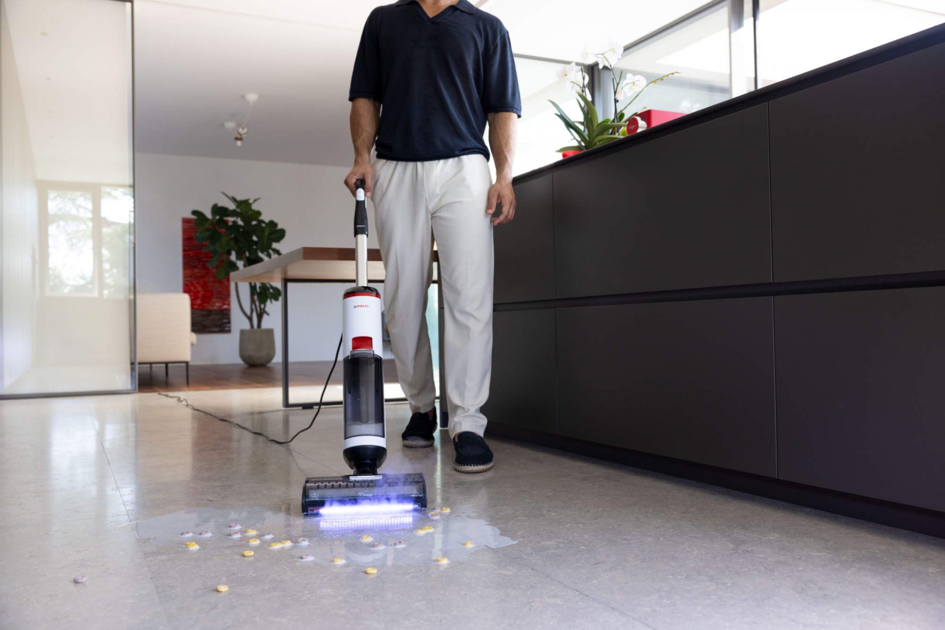 Mit dem neuen POLTI RollySteam wird der Hausputz zum Kinderspiel: Saugen, Wischen und Dampfreinigen in einem Schritt – all-in-one, effektiv und dynamisch beseitigt er bis zu 99,999 %* aller Krankheitserreger. Während Kinder durchs Wohnzimmer toben oder der Hund vom Spaziergang heimkommt, sorgt der POLTI RollySteam dafür, dass Böden schnell wieder hygienisch sauber sind – ohne chemische Zusätze, sicher für kleine Hände und empfindliche Tiernasen.