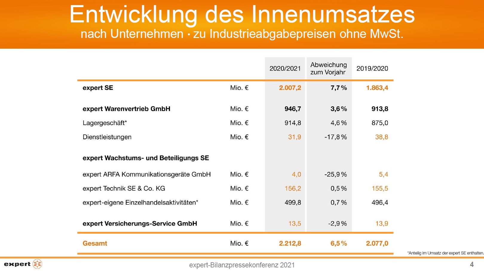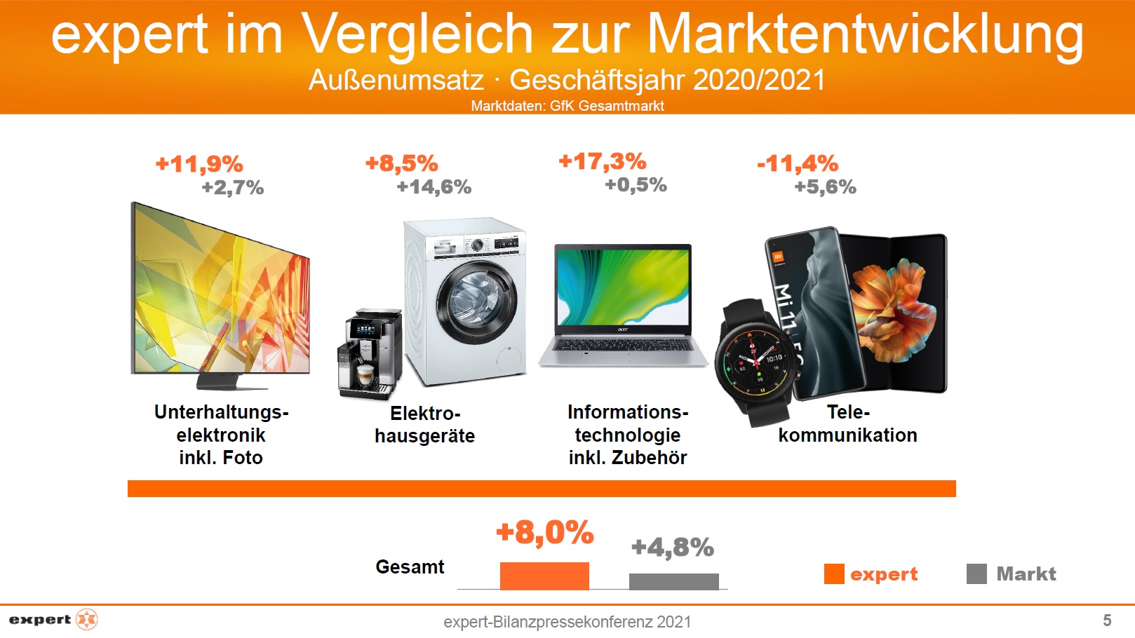 Auch in der zweiten Hälfte des Geschäftsjahres konnte die dreimonatige Lockdown-Phase gemeinsam bewältigt werden. Dabei hat sich erneut der dezentrale expert-Ansatz – die Kombination aus stationärem Geschäft mit regionalem und überregionalem Onlineauftritt – bewährt und trifft die Bedürfnisse der Kunden.