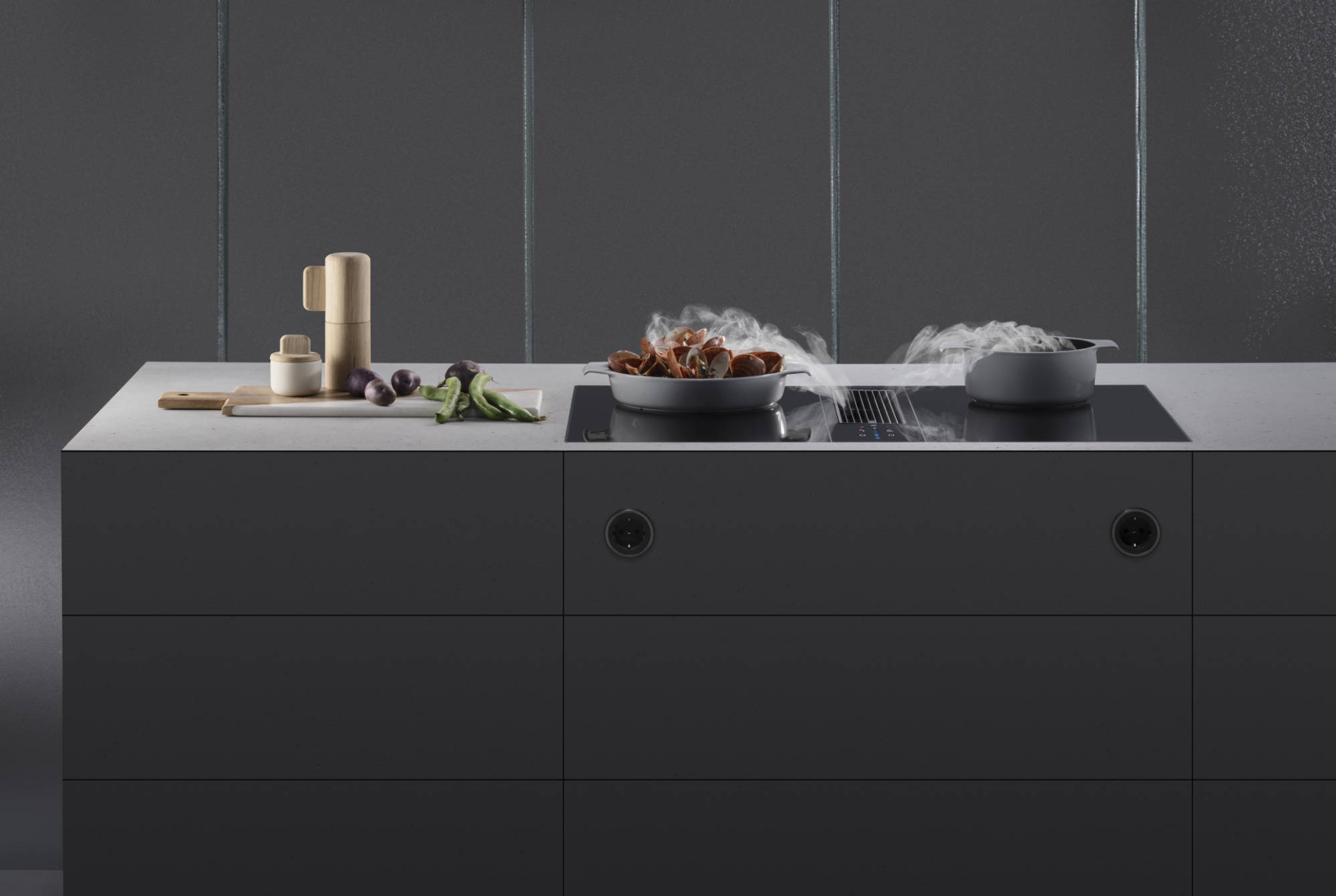 Bora Classic 2.0 ist eine Innovation mit zentraler Bedieneinheit und neuem Vertikal-Slider (sControl+). Bei dem modularen System sind alle wichtigen Bedienfunktionen nur einen Tastendruck entfernt, die Kontext-Sensivität mittels Farben, Hell-/Dunkel-Schaltungen, Akustik und gezielten Animationen macht die tägliche Nutzung spielerisch einfach. Das im Standby-Modus nahezu unsichtbare, tiefschwarze Bedienfeld ist zentral unterhalb des Abzugs positioniert.