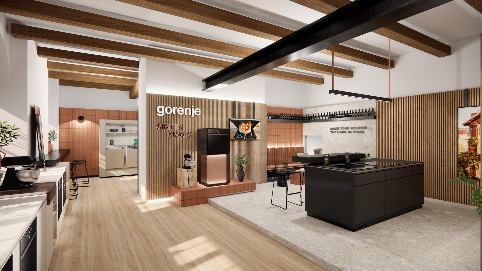 Auch in diesem Jahr bildet die einmalige Atmosphäre auf Gut Böckel den idealen Rahmen für einen ganz besonderen Messeauftritt von Gorenje. Im vorderen Teil der Ausstellung dreht sich alles um den neuen PizzaPlus Einbaubackofen, der mit 350°C und innovativer Technologie in kürzester Zeit die perfekte Pizza zaubert. Die Fachbesucher dürfen sich auf mediterranes Ambiente und ein Hauch von Dolce Vita freuen.