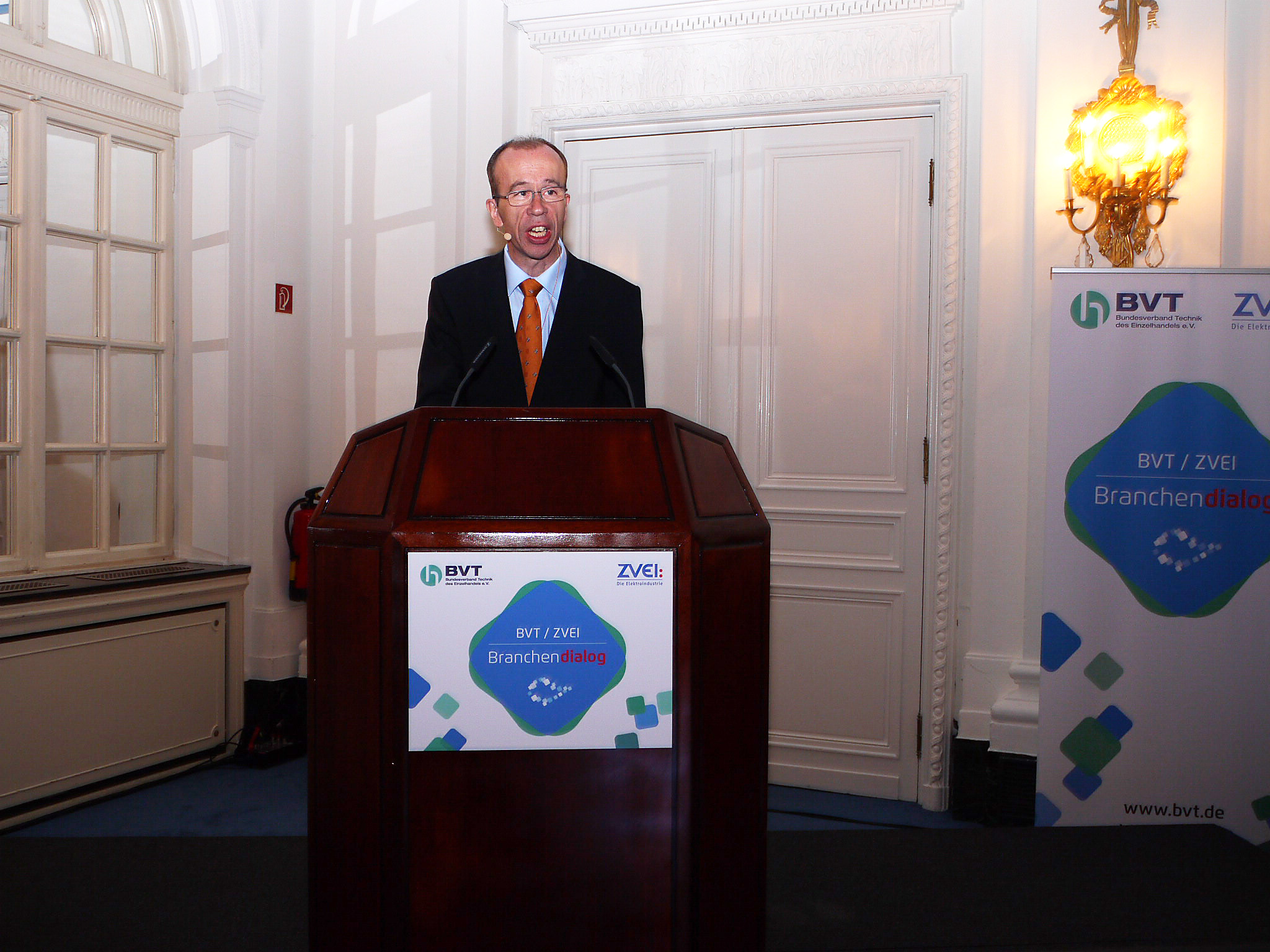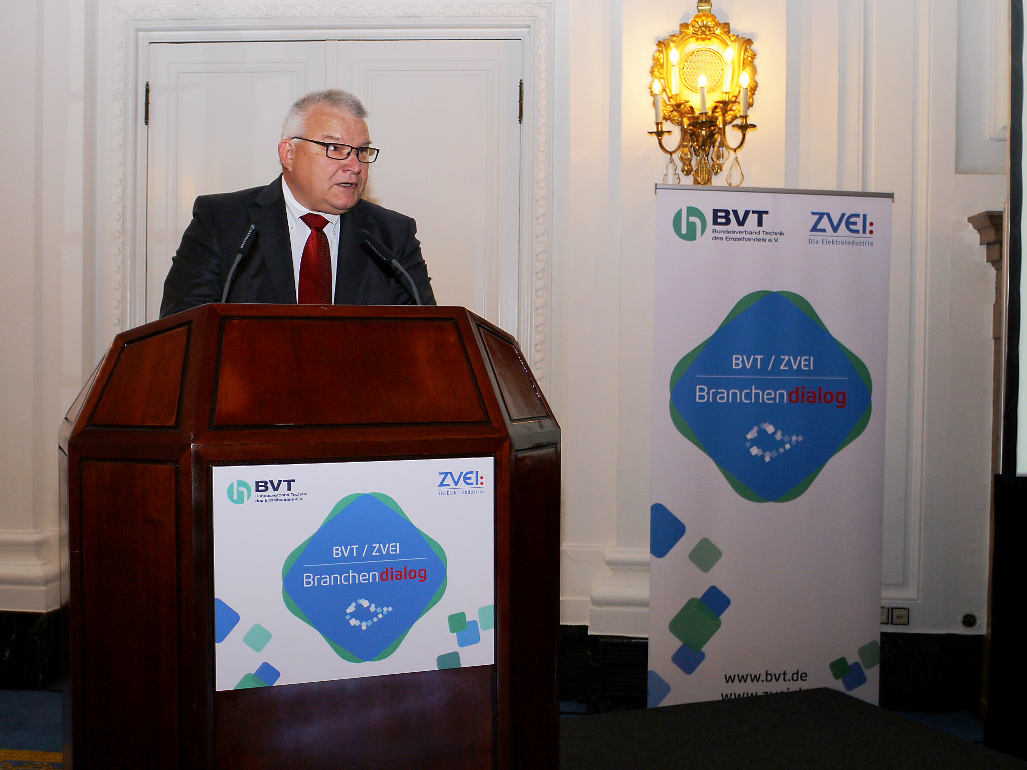Hans Wienands, Vorsitzender der ZVEI Fachgruppe Consumer Electronics, beschreibt auf dem Branchendialog die Lage wie folgt: „Wir leben in einer revolutionären Zeit: die Digitalisierung löst dramatische Veränderungen aus: gesellschaftlich, politisch und wirtschaftlich – und das in einer nie zuvor gekannten Beschleunigung – quasi eine industrielle Revolution in Lichtgeschwindigkeit. Aber die Gesetze (und auch Gewohnheiten), die unser gemeinsames Handeln zwischen Industrie, Handel und Verbraucher regeln, stammen aus einer Zeit, als zum Beispiel der Begriff „Fernabsatz“ durch sorgfältiges Katalogstudium, das Ausfüllen einer Bestellpostkarte und die zuverlässige Lieferung durch die Deutsche Bundespost an die Haustüre definiert wurde.“