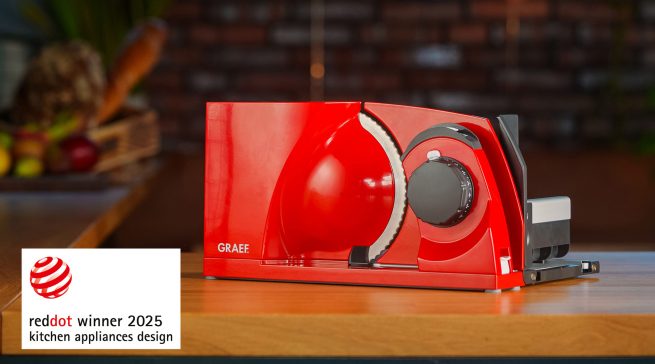 Der kompakte Allesschneider MYtiny von Graef wurde mit dem Red Dot Award: Product Design 2025 ausgezeichnet. Die internationale Jury des renommierten Designwettbewerbs würdigt damit die gelungene Verbindung aus Funktionalität und Gestaltung. Mit dem MYtiny bringt der Hersteller aus Arnsberg einen vollwertigen Allesschneider im Kleinformat auf den Markt, der durch hohe Verarbeitungsqualität, ein reduziertes Formkonzept und praktische Details überzeugt.