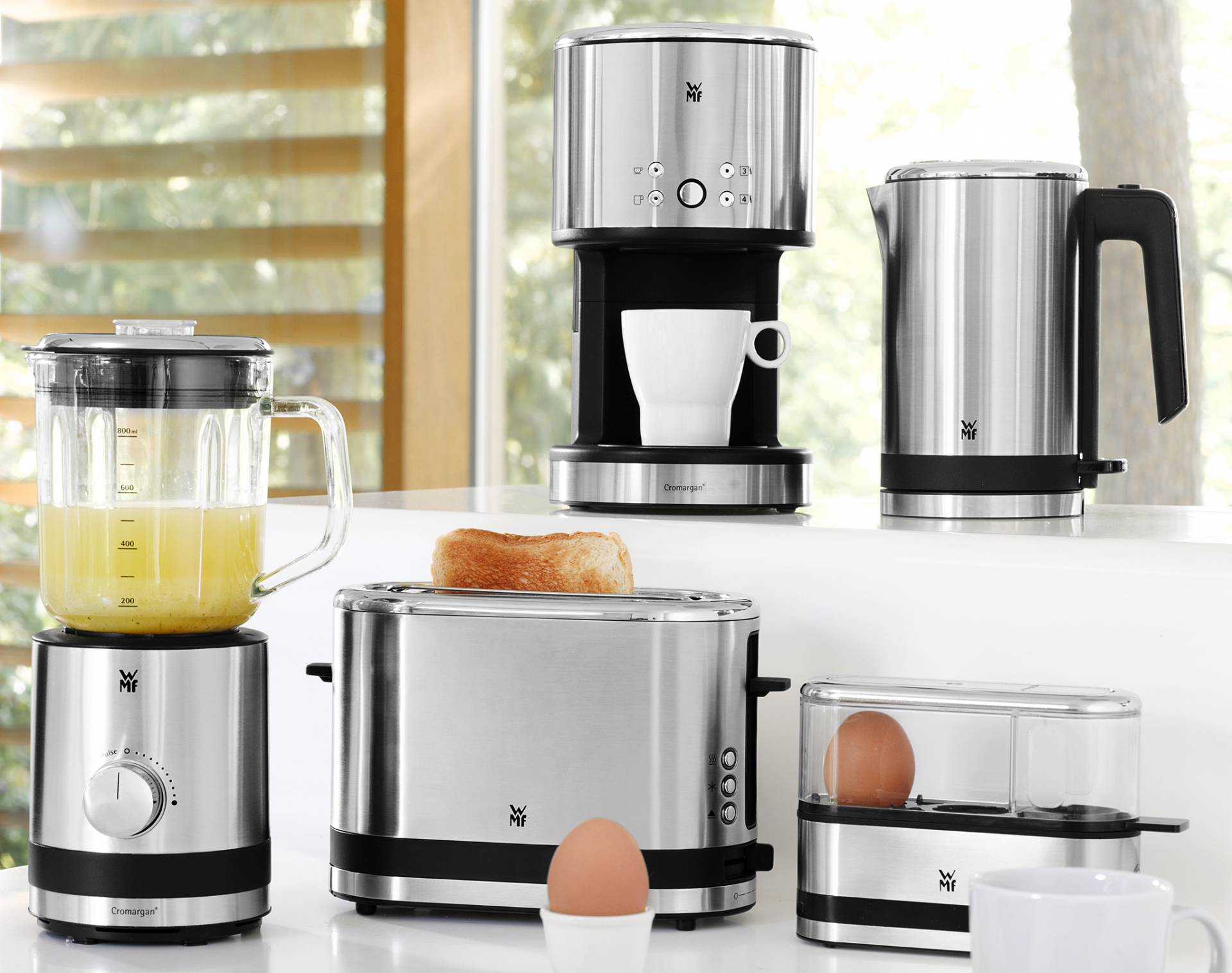 Die Serie der WMF KÜCHENminis hat die begehrte Designauszeichnung Product Design erhalten. Die Serie, bestehend aus der AromaOne Filterkaffeemaschine, einem 0,8 l Wasserkocher, einem 1-Scheiben-Toaster, einem 2-Eier-Kocher und einem 0,8 l Kompaktmixer, wurde im Hinblick auf eine deutliche Platzersparnis, Reduzierung im Einsatz wertvoller Ressourcen und um Energie zu sparen entwickelt.