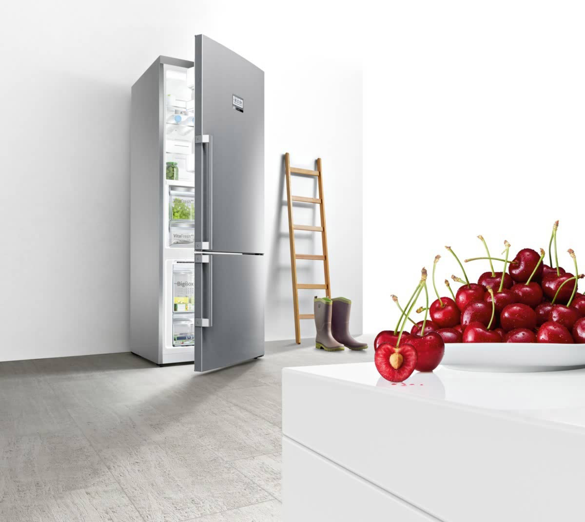 Neben kleinen Hausgeräten beeindruckten auch die Großgeräte von Bosch die Jury, allen voran das 80 cm breite Sensor-Induktionskochfeld PXY875DE2E, dessen Koch- und Brat-Sensorik sich auf dem neuesten Stand der Technik zeigt. Dreifach erfolgreich waren auch die Full NoFrost Kühl-Gefrier-Kombinationen. Die beiden XXL-Modelle KGF56PI40 und KGF56SB40 kommen der steigenden Nachfrage nach größeren Kühlgeräten mit mehr Stauraum und Übersicht entgegen. Auf 70 Zentimetern Breite und 80 Zentimetern Tiefe bieten die Geräte 480 Liter bzw. 505 Liter Gesamtnutzinhalt. Dritter Preisträger beim Kühlen ist die KGN39AI45 der Serie 6 in Edelstahl mit vertikalem Stangengriff, LEDBeleuchtung und variabler Innenraumgestaltung.