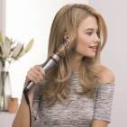 Das 1000 Watt starke Gerät vereinigt zwei Stylingvorgänge in einem. Es lässt mit den austauschbaren Aufsätzen und zwei kombinierten Heiz- und Gebläsestufen – mit Abkühlstufe – Spielraum für die unterschiedlichsten Stylingwünsche.
