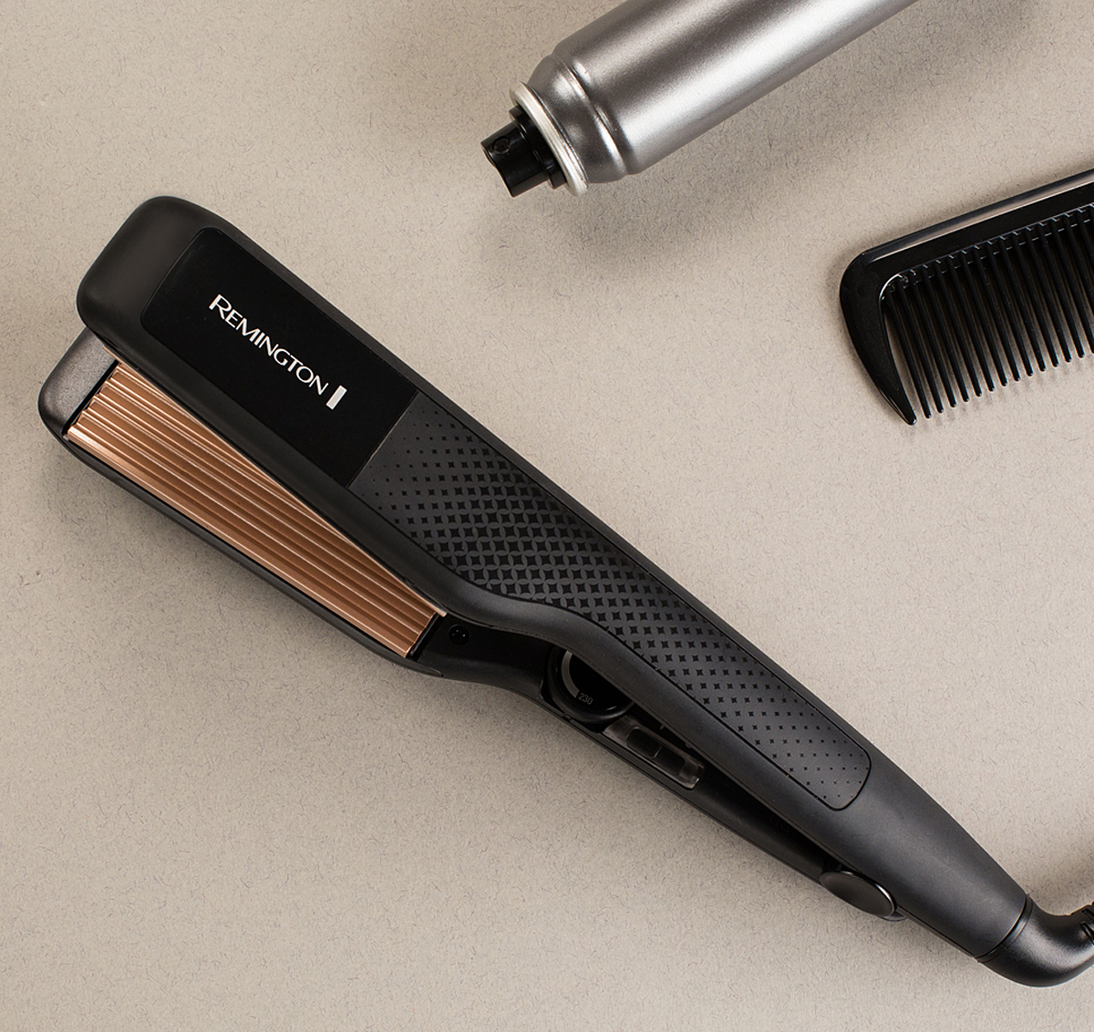Das Remington Kreppeisen Ceramic Crimp 220 S3580 stylt den wiederentdeckten Look mit definierten Zick-Zack Wellen und Volumen.
