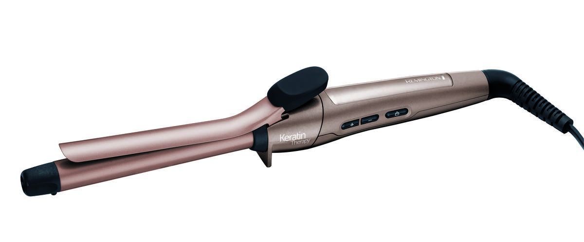 Der Remington Lockenstab Keratin Therapy Pro Curl verspricht gesund aussehende Locken voller Sprungkraft. Mit seinen 19 mm Durchmesser gelingen dem Remington Lockenstab definierte Locken im Handumdrehen, gleichzeitig werden die Haare dank hochwertiger Keratin-Keramikbeschichtung geschützt. Die fünf Temperatureinstellungen von 130 bis 210 °C im integrierten digitalen Display machen den Remington Lockenstab Keratin Therapy Pro Curl zum edlen Styling Must-Have für jeden Haartyp.