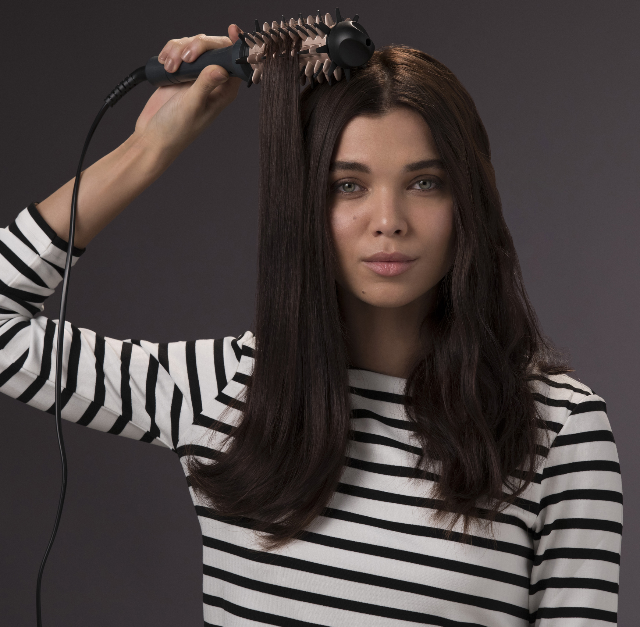 Akzentuiertes Volumen am Ansatz und/oder in den Spitzen verleiht einem Haar-Look Charakter und ist in dieser Saison angesagt. Die Bürste erfüllt den schwungvollen Trend und kreiert Big & Bouncy Styles, indem sie das Haar glättet und dem Haaransatz sowie den Haarenden Volumen verleiht.