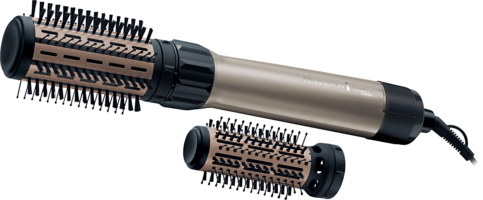 Die Remington Warmluftbürste Keratin Therapy Volume & Protect AS8110 bedient sich dem Protein Keratin, das als Grundbaustein für starkes und gesundes Haar gilt. Das Keratin wird durch Hitzeaktivierung an das Haar abgegeben und sorgt für zusätzlichen Schutz und Pflege. Die Produkte der Keratin Therapy Serie ermöglichen auf einmalige Weise Pflege und individuelles Styling – ohne Kompromisse für das Haar.