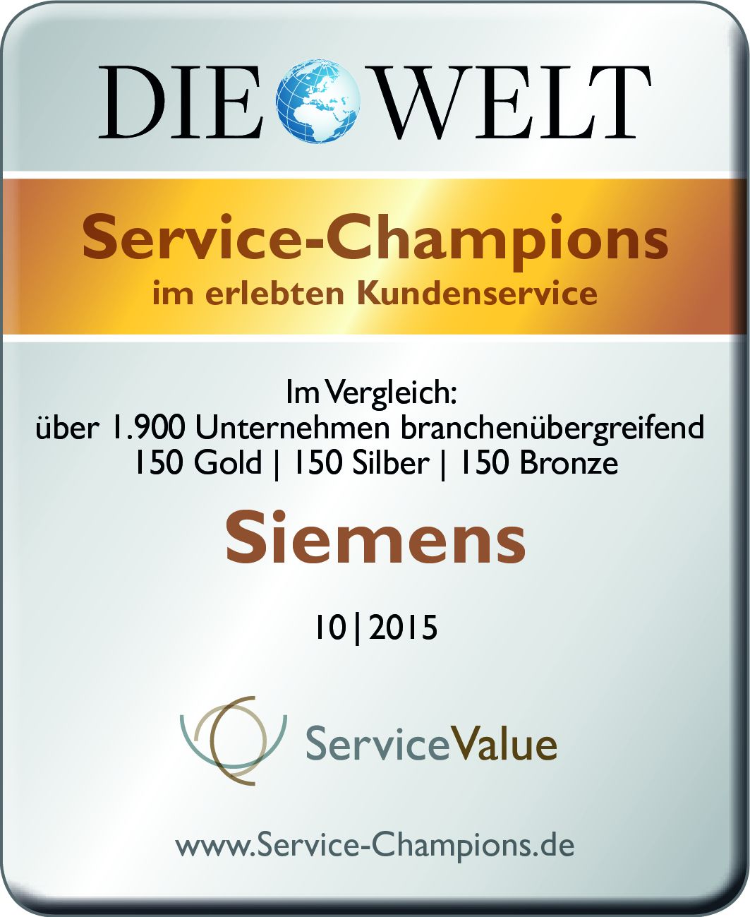 Zwei Mal Gold für die Marken der BSH Hausgeräte: Für ihren guten Kundenservice erhalten Bosch und Siemens die Auszeichnungen „Service-Champions 2015“ – eine Studie zum erlebten Kundendienst, die das unabhängige Institut ServiceValue in Zusammenarbeit mit der Tageszeitung Die Welt und der Goethe-Universität Frankfurt durchführt.