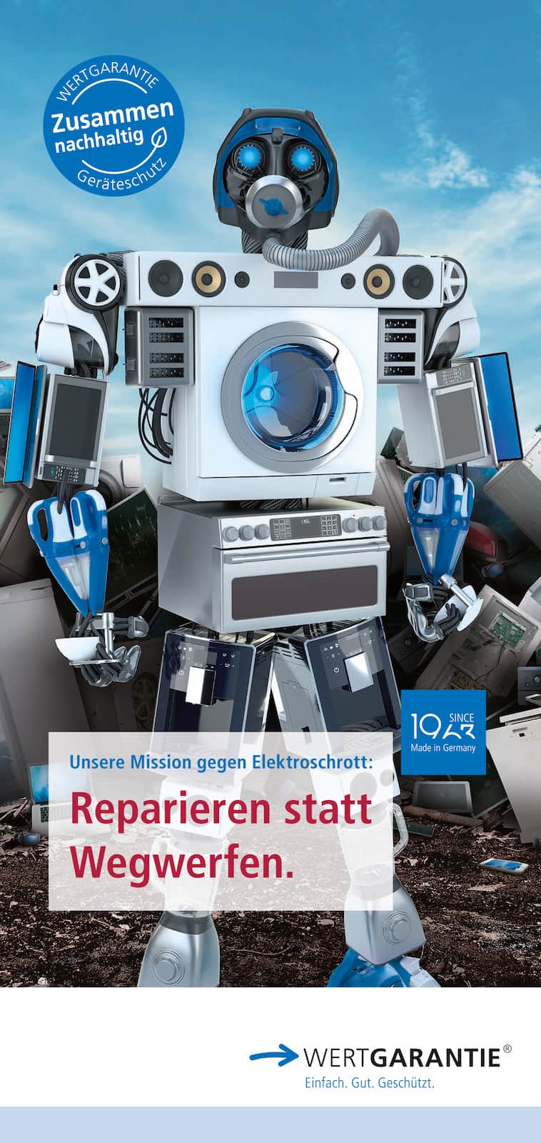 Doch das muss nicht sein: Mit einem Geräteschutz verlängern Kunden die Lebensdauer ihrer Hausgeräte und schonen damit nicht nur Ressourcen, sondern auch Ihr Budget. Wertgarantie schafft mit der Kampagne „Reparieren statt wegwerfen“ ein neues Bewusstsein für den Umgang mit Elektroschrott – und trägt das Thema durch umfangreiches Begleitmaterial auch an den PoS.