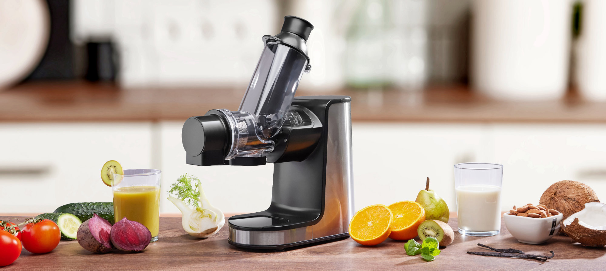 Der Slow Juicer bietet eine hohe Saftausbeute mit maximalem Nährstoffgehalt. Dank direktem Kaltpressverfahren liegt der Extraktionsgrad bei bis zu 90%. Anders als bei Zentrifugalentsaftern gehen weder durch Hitzeentwicklung noch durch Oxidation Nährstoffe verloren. Ein 200 Watt Motor sorgt für langsame 80 Umdrehungen pro Minute und entsaftet auch faserige Zutaten wie Spinat, Sellerie oder Grünkohl zuverlässig.
