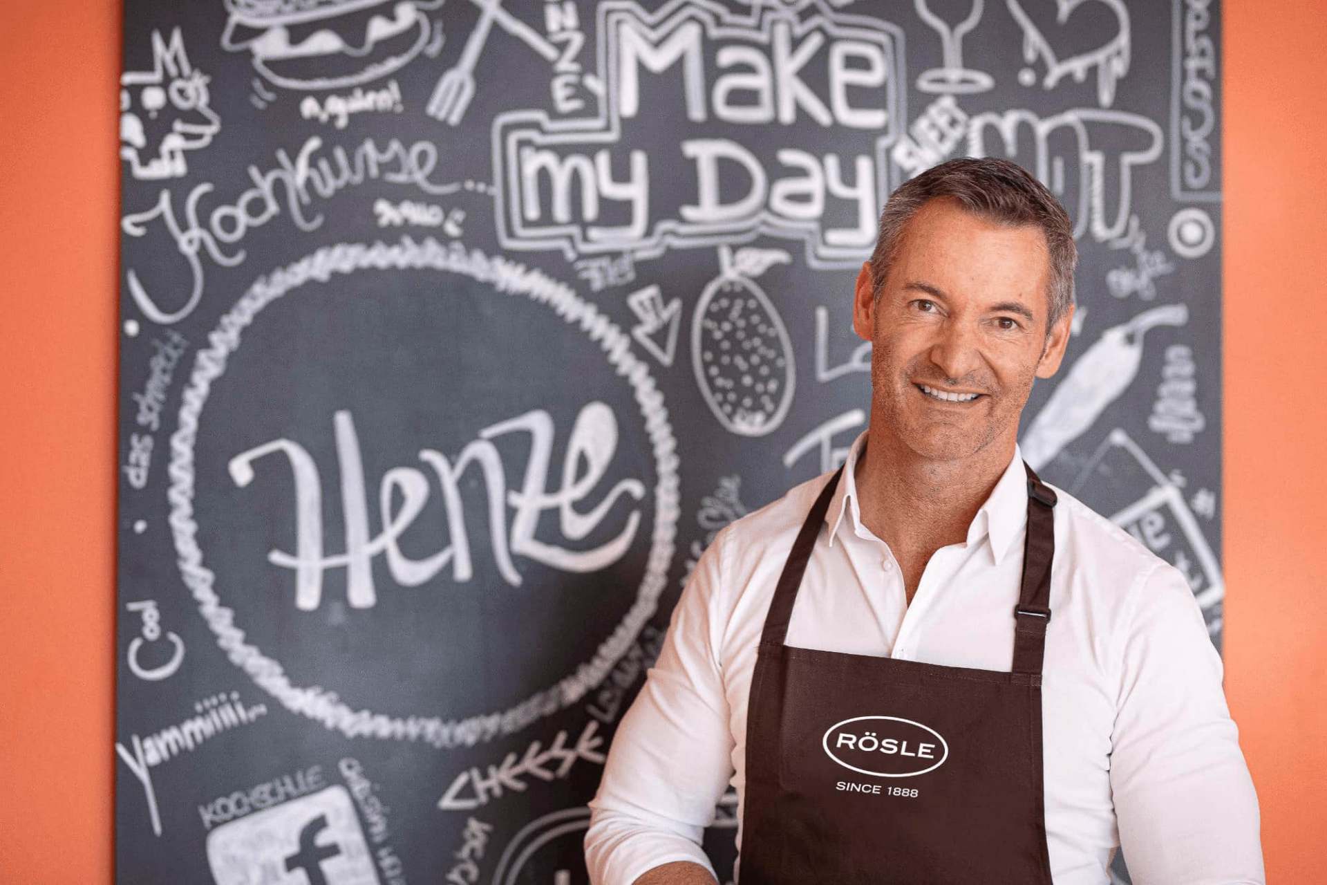 Seine Kochschule in Kempten, die mehrfach mit dem „Cooking together Award“ ausgezeichnet wurde, stattet in Zukunft Rösle mit seinen Produkten aus. Zusätzlich gewinnt das Unternehmen an Medienpräsenz, denn neben dem Rösle-Logo auf Christian Henzes Schürze werden in seinen Sendungen und auf den Social-Media-Kanälen regelmäßig Rösle-Produkte zu sehen sein.