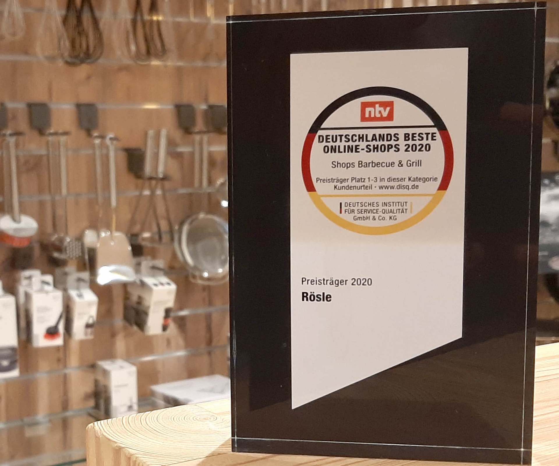 Über 730 Anbieter hat der Nachrichtensender ntv mit dem deutschen Institut für Servicequalität (DISQ) für den Preis „Deutschlands beste Online-Shops 2020“ bewertet und dafür rund 50.000 Kundenmeinungen eingeholt. Ergebnis: Rösle überzeugt und wird als Deutschlands bester Online-Shop in der Kategorie „BBQ & Grill“ ausgezeichnet.