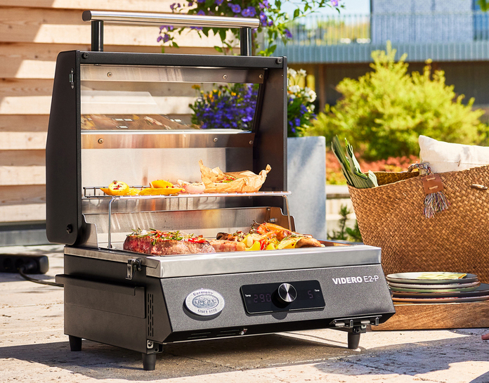 Der Rösle Grill Videro E2-P ist ein handlicher Elektrogrill mit einer Leistung von 2.800 W und Temperaturen von 120 °C bis 300 °C.
