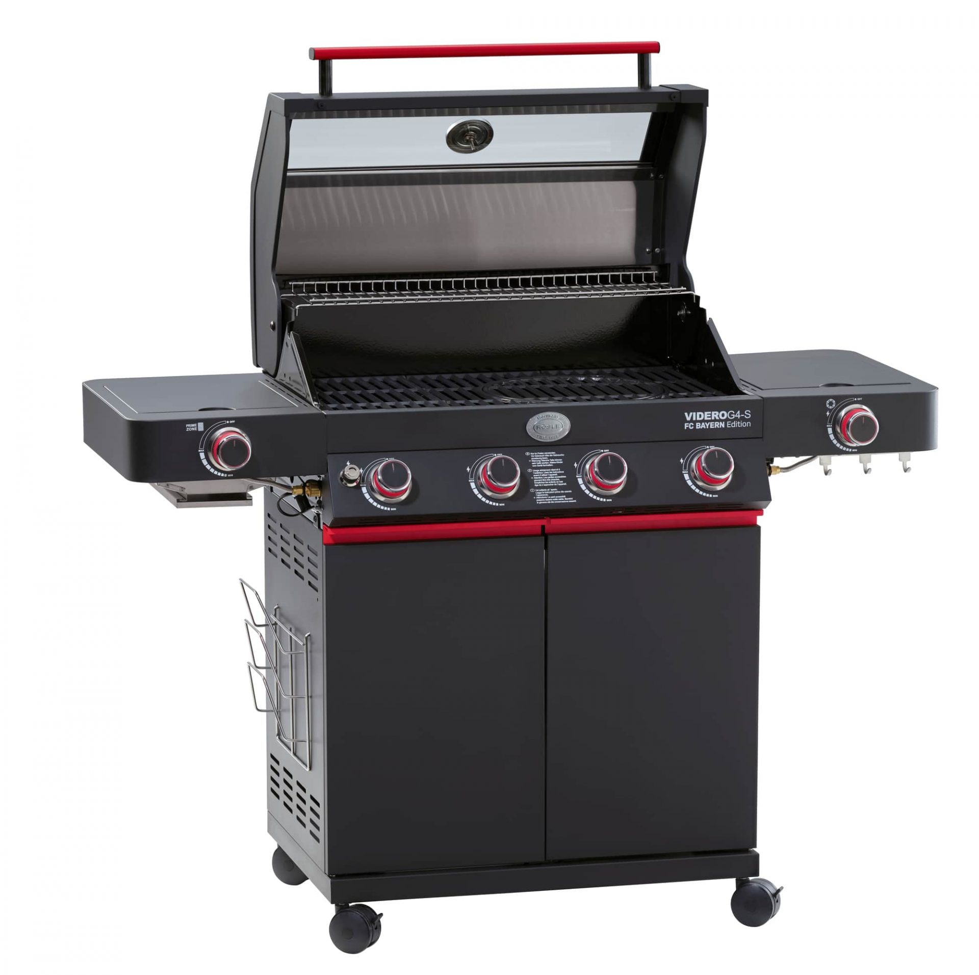 Sofort zu erkennen ist die Edition am Bayern-Branding mit integrierten Logos und roten Fan-Akzenten. Jeder Edition Gasgrill enthält außerdem drei Aufkleber (FC Bayern Logo rund, „Mia san Mia“-Schriftzug und 5 Sterne). Das wichtigste Grillzubehör liegt ebenfalls bereit, inklusive passenden „Trikots“ für die Grills.