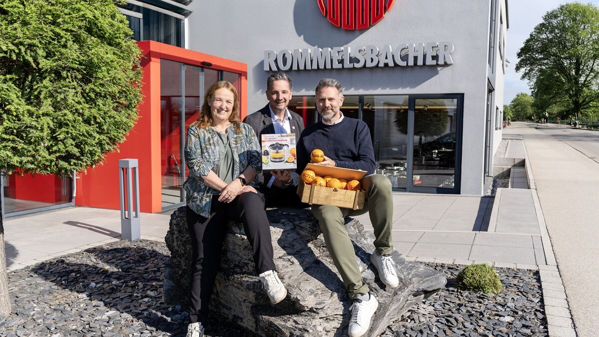 Sigrid Klenk (CEO|Geschäftsführerin) und Thomas Alter (Organisationsentwicklung) haben dem Newcomer deshalb nicht nur eine Zitruspresse von Rommelsbacher als Willkommensgeschenk überreicht, sondern auch einen Korb voller Orangen, wobei jede einzelne mit einem guten Wunsch für seinen Weg versehen war, darunter Vertrauen, Klarheit und Zuversicht. „Denn genau diese Zutaten machen erfolgreiche Zusammenarbeit aus.“