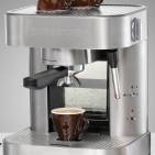 Der massive 2-Loch Siebträger liegt gut in der Hand, je nach Filtereinsatz lassen sich 1 oder 2 Tassen zubereiten. Der abnehmbare 1,5 Liter Wassertank mit elektronischer Wasserstandskontrolle ist mit einem Wasserfilter ausgestattet. Für bequeme Handhabung sorgt die höhenverstellbare Tassenabstellfläche, die abnehmbare Abtropfschale mit Kontrollanzeige und die übersichtliche Bedienleiste mit LED Kontrolllampe.