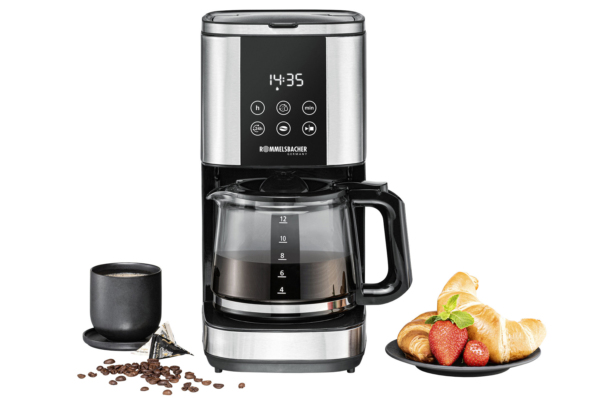 Die Filterkaffeemaschine brüht bis zu 12 Tassen aromatischen Kaffee in einem Durchgang. Zur Ausstattung gehören ein abnehmbarer Wassertank zum leichten Befüllen und ein Touch Control Bedienkonzept mit großem LED-Display.