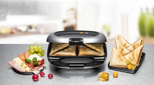 Ebenfalls neu und auf der Ambiente zu sehen ist ein robuster Sandwich Maker von Rommelsbacher im XL-Format. Er ist perfekt, um zwei Sandwiches Toasts schnell wie komfortabel zuzubereiten. Das leistungsstarke Gerät heizt schnell auf und bäckt sehr gleichmäßig. Das Schöne ist: Am Ende kann das Gerät platzsparend senkrecht im Küchenschrank verstaut werden.