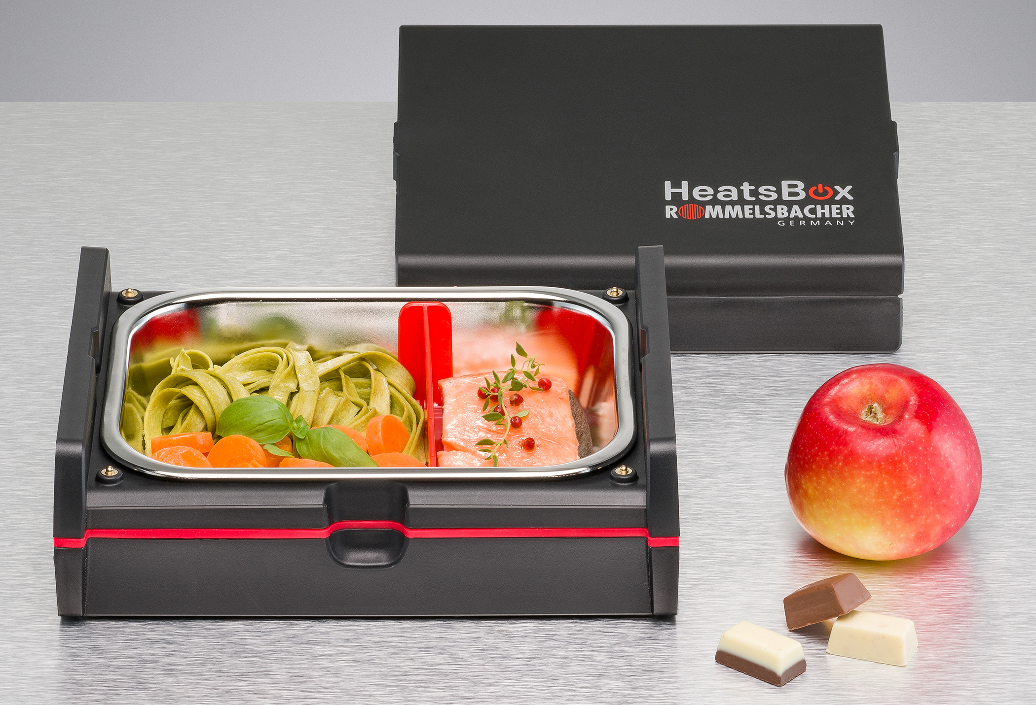 Die Rommelsbacher HeatsBox HB 100 eignet sich zum Vorbereiten, Mitnehmen und schonendem Erhitzen von Mahlzeiten. Zeit- und temperaturgenau wird das Essen elektronisch gesteuert erwärmt. Die Bedienung ist per App oder manuell möglich.