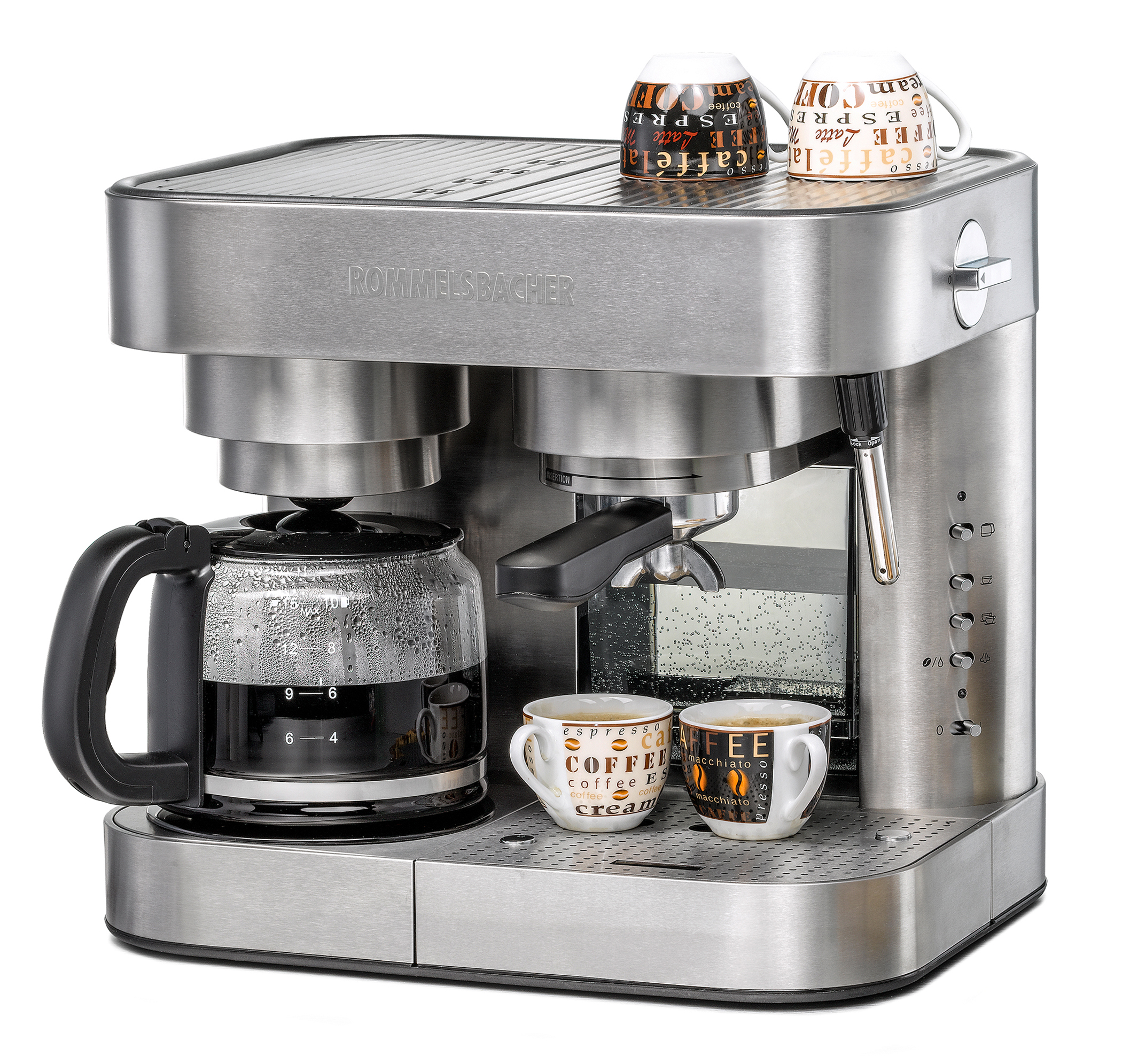 Das Rommelsbacher Kaffee-/Espressocenter EKS 3010 bereitet duftenden Filterkaffee, aromatischen Espresso mit feiner Crema, Cappuccino oder Tee. Hochwertige Materialien und erstklassige Ausstattung garantieren aromafrischen Kaffeegenuss.
