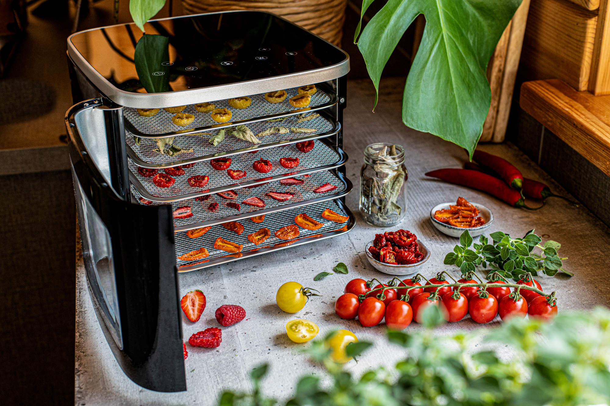 Gesunde Snacks auf kleinstem Raum Der kompakte Mini Dörrautomat DA 450 ermöglicht gesundes Selbermachen auch in kleinen Küchen. Auf ca. 0,2 m² Dörrfläche und 5 Edelstahltabletts entstehen vielseitige Leckereien wie Apfelchips, Beef Jerky oder Müsliriegel. Ideal für Einsteiger und DIY-Fans, die Wert auf natürliche Ernährung ohne Zusatzstoffe legen.