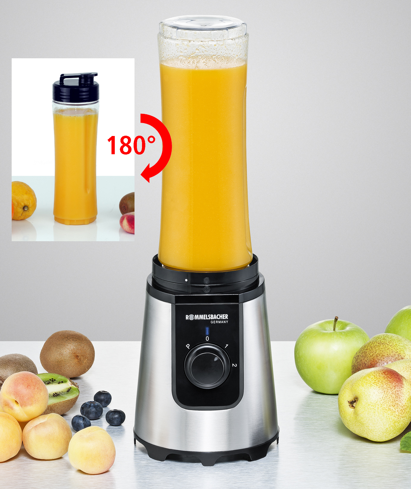 Der Rommelsbacher Standmixer Mix & Go Mix 200 ist ein kompakter Standmixer, der speziell für die Zubereitung kleinerer Portionen ausgelegt ist. Aus frischen Früchten lassen sich damit schnell gesunde Smoothies und Obstsäfte herstellen. Der Mixbehälter fasst 0,6 Liter und kann mit dem One-Klick Verschlusses sicher in jeder Tasche transportiert werden.